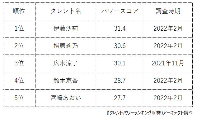 タレントパワーランキングは、株式会社アーキテクトが実施する業界最大規模のタレント(芸能人等有名人)調査結果をもとに、各タレントの有するパワーをリアルタイムにお届けします。
