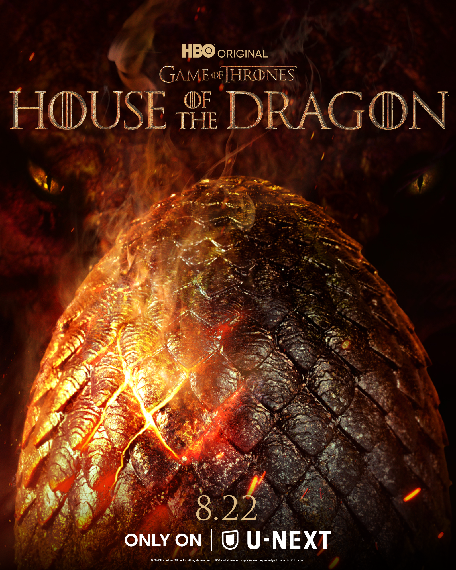 U-NEXTでは、『ハウス・オブ・ザ・ドラゴン』を日本のファンのみなさまにいち早くお届けすべく、最速配信となる米国HBOでの放送と同時刻の8月22日(月)より独占配信いたします。これからも、U-NEXTからの続報にご期待ください。