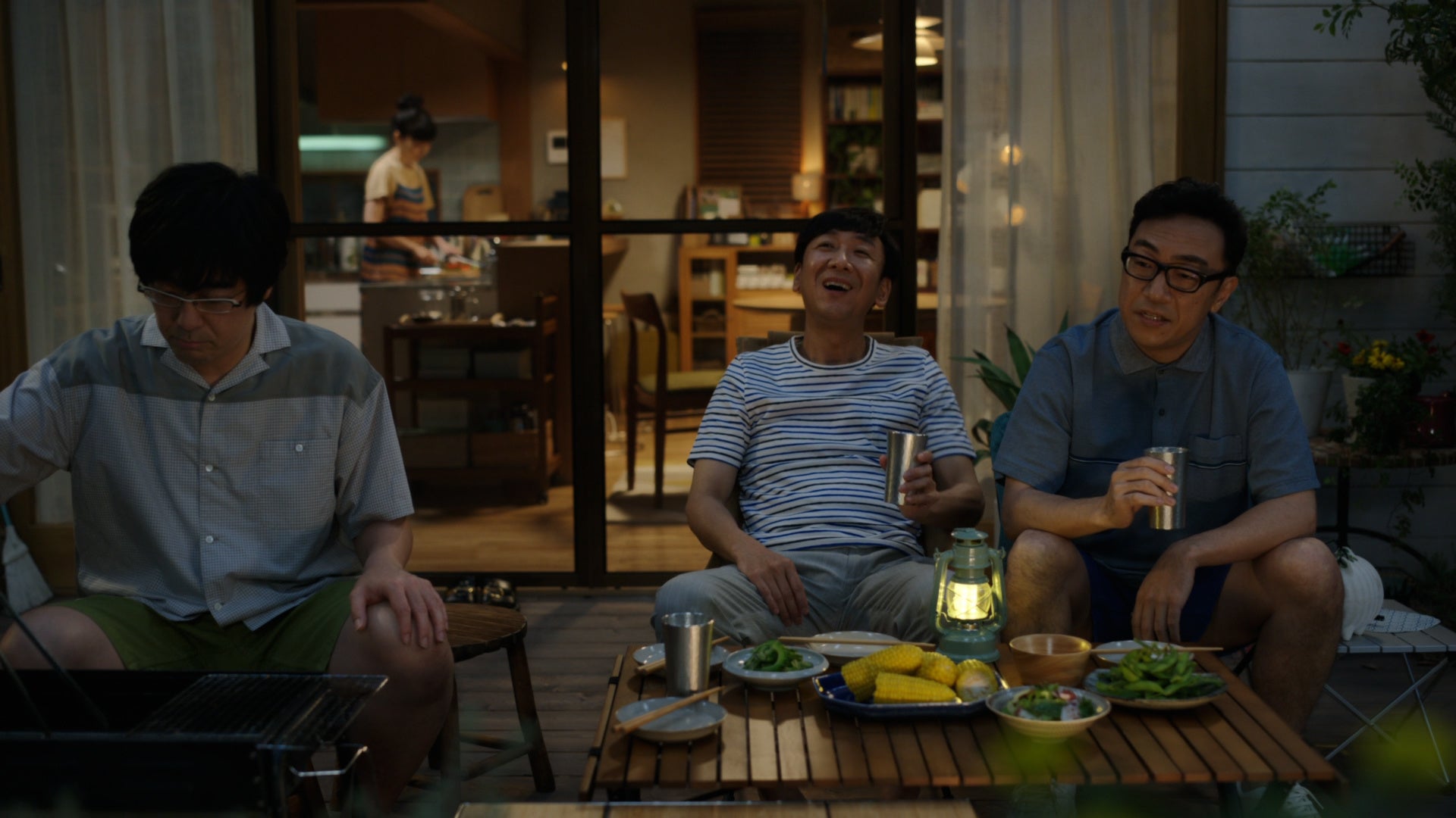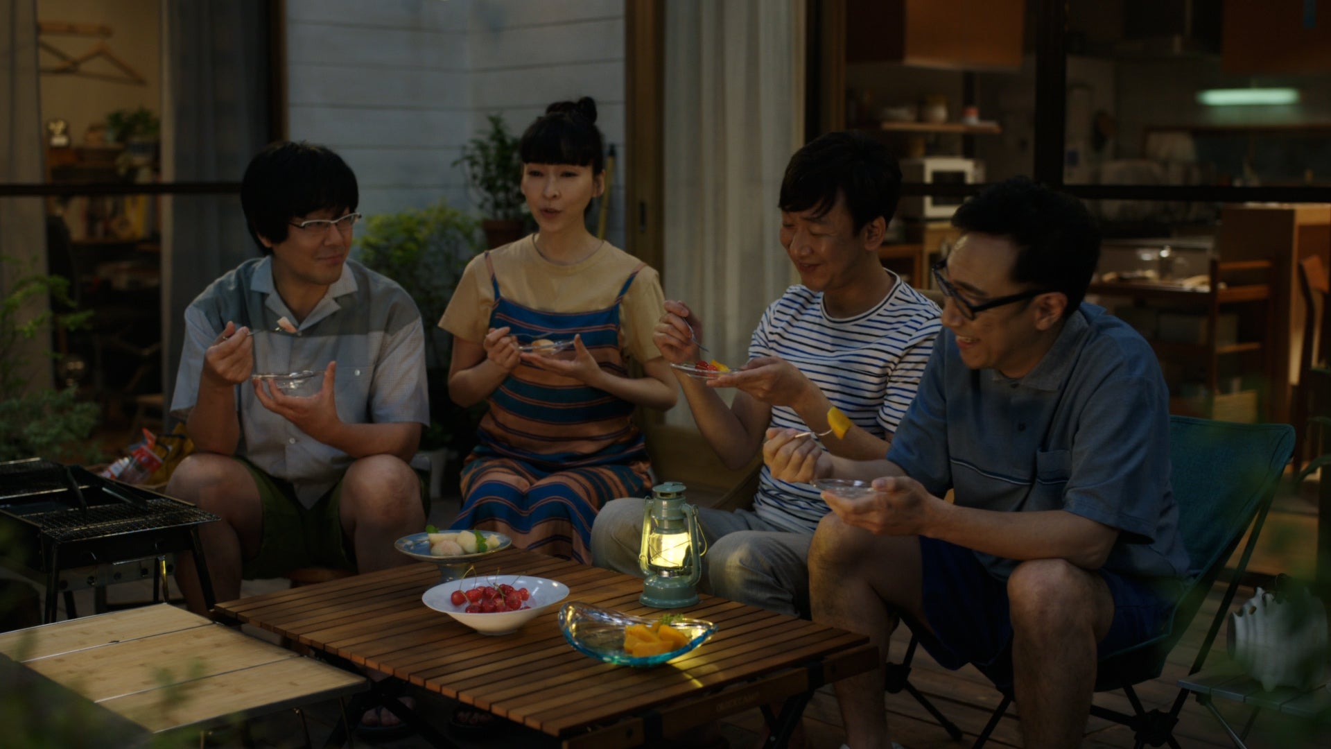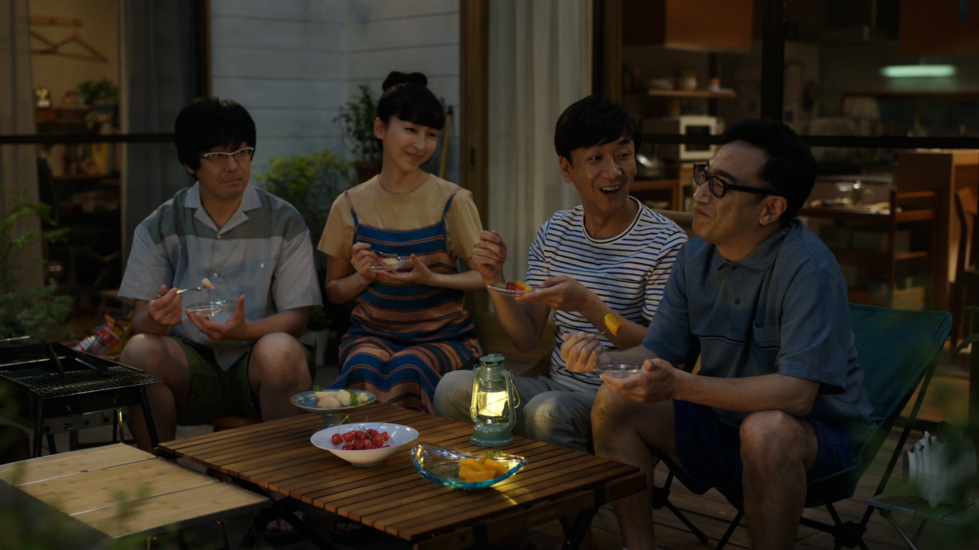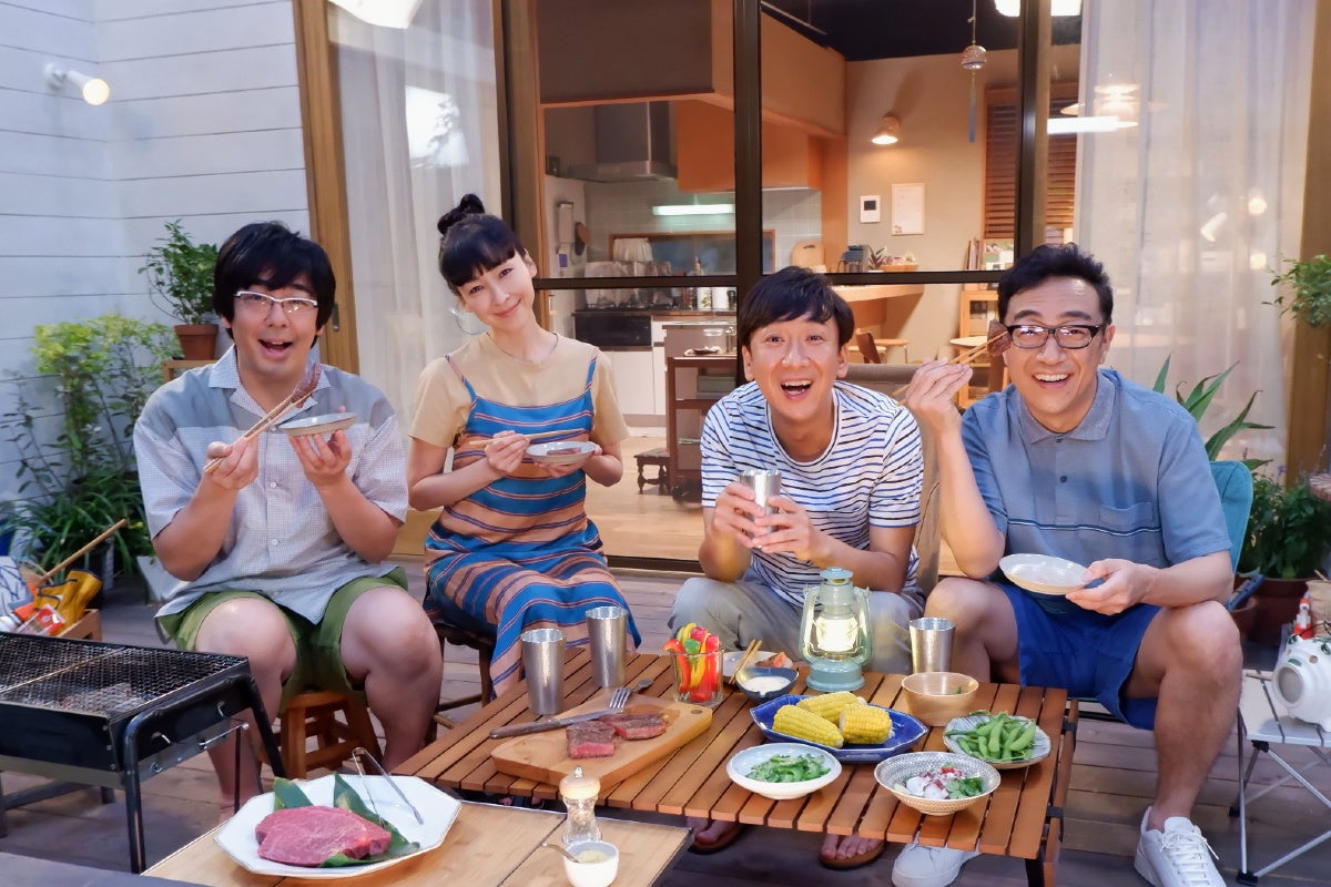 庭での食事を楽しむ4人。飯塚さんが「野球とかもさ、自分でやるより見るほうが好きなんだよ」と話すと、「プロレスとかそうだね、僕も」と豊本さんと盛り上がります。「ふるさと納税だよ、人のふるさと納税見るってなんだよ」と言う角田さんに「見ます?」と東京03のコントを彷彿とさせるユーモアあふれる返しをする麻生さん。言われた通りお礼品を眺める飯塚さんと豊本さんに「何してんだよ」と角田さんらしいツッコみが入るコミカルな内容になっています。