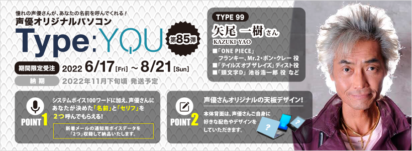 【声優オリジナルパソコン【Type:YOU】第85弾 商品ラインナップについて】