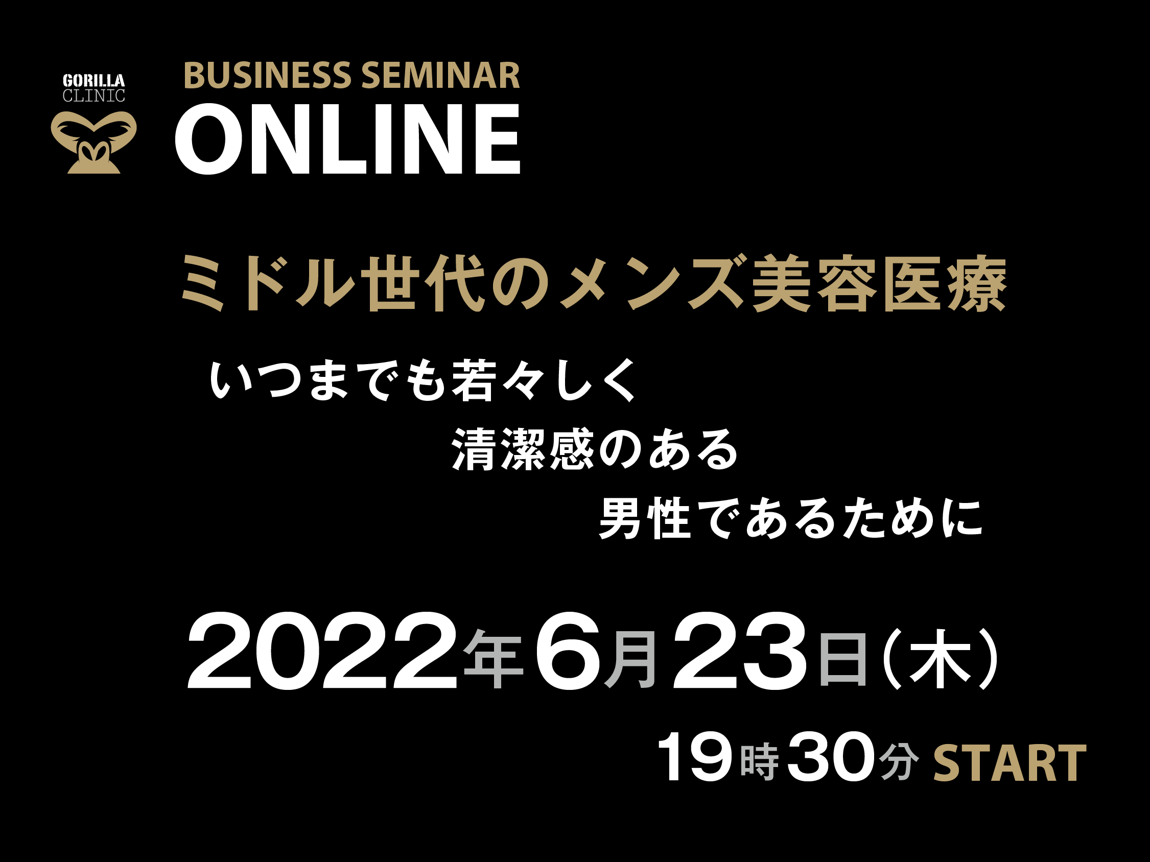 - 6月23日(木)「ミドル世代のメンズ美容医療」無料WEBセミナー開催概要(ゴリラクリニック主催)