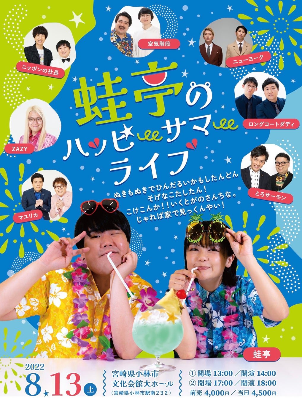 私の地元小林市で大好きなメンバーとのライブがあります!最高の夏です。ネタとみんなでユニットコントもあります。