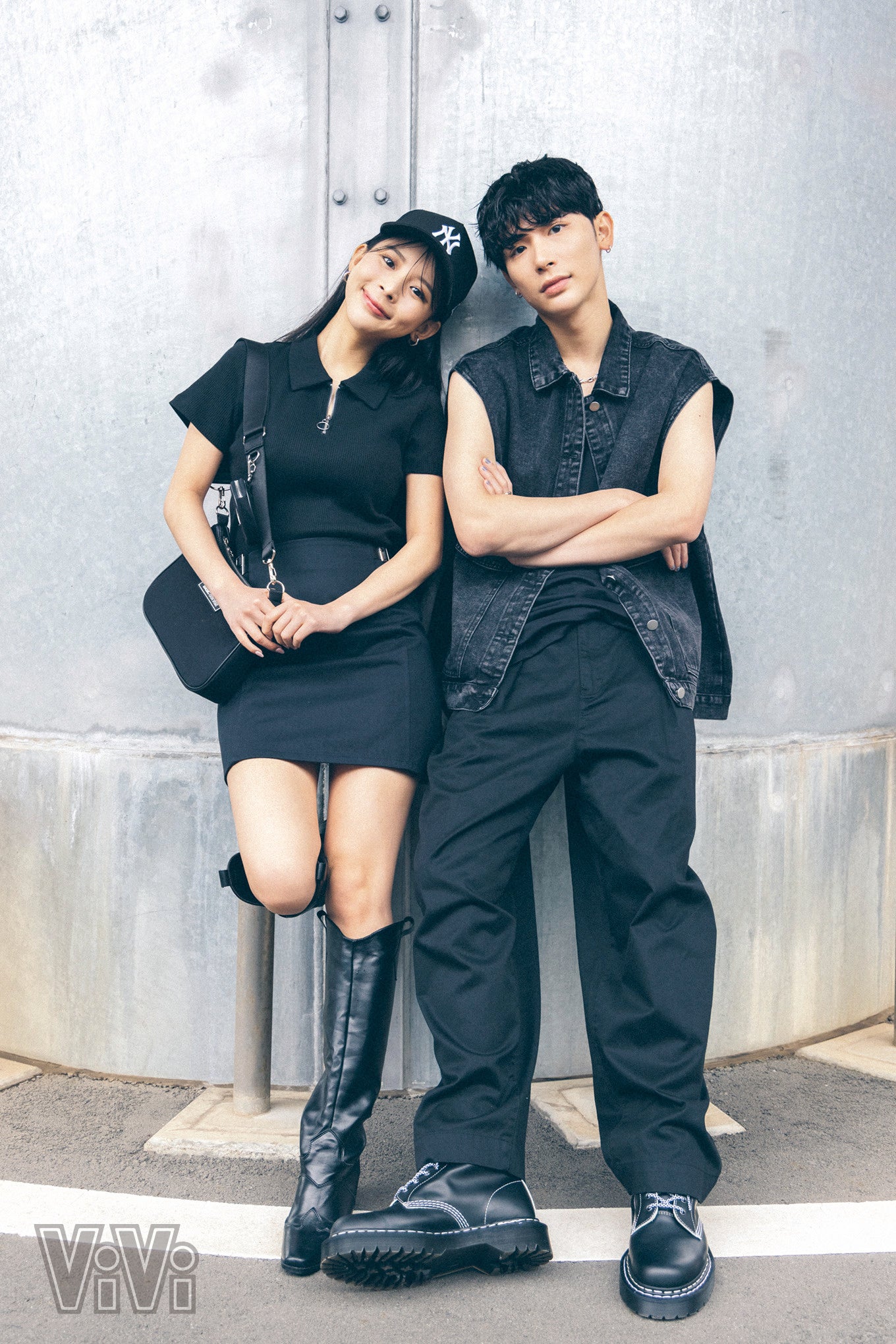 撮影では、自分たちが着る衣装を見ながらシチュエーション別のコーデに対して設定とコメントまで考えてくれました。例えば、TikTokを撮るコーデの際には「TikTokは動いてる姿を見せられるから一番盛れたアタシを映し出す婚活サイト。アラブの石油王が私を見つけてくれますよーに!」といった具合によしミチ節全開。大喜利さながらのスタイルにViViスタッフも終始爆笑している賑やかな現場となりました。新大久保には、スキンケアアイテムの他に、美味しい麺、グミなども買いに行くという2人。「チャミスルを飲みすぎてもALL黒コーデなら酔ってころんでもケンチャナヨ」コーデもバッチリ着こなしてくれました。