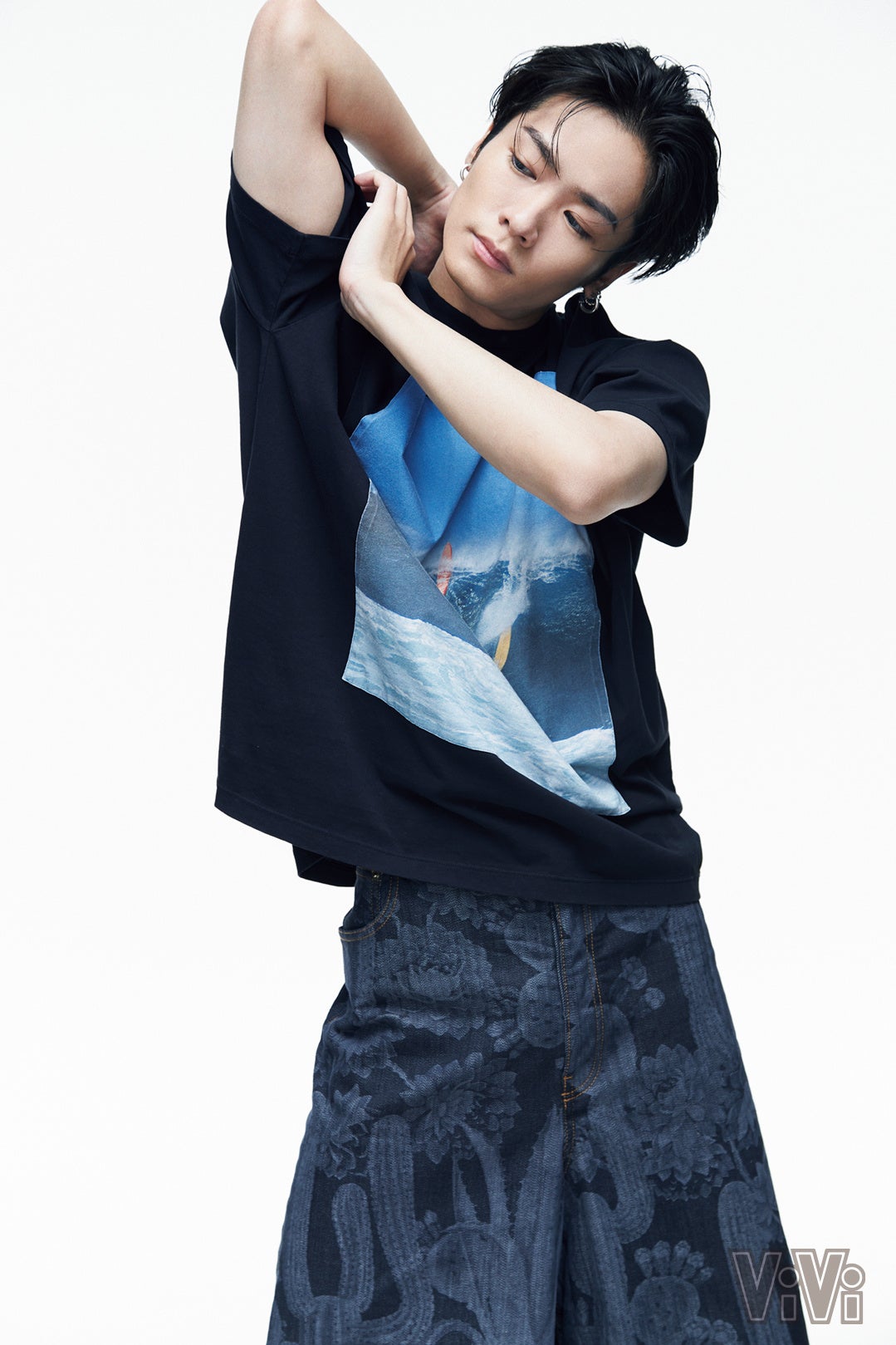 「このTシャツめちゃくちゃ形いいですね」「僕の好きなブランドなんで、今日の撮影楽しいです」そんなふうに言いながら、撮影してくれたのは、THE RAMPAGE from EXILE TRIBEでボーカルを務める川村壱馬くん。
