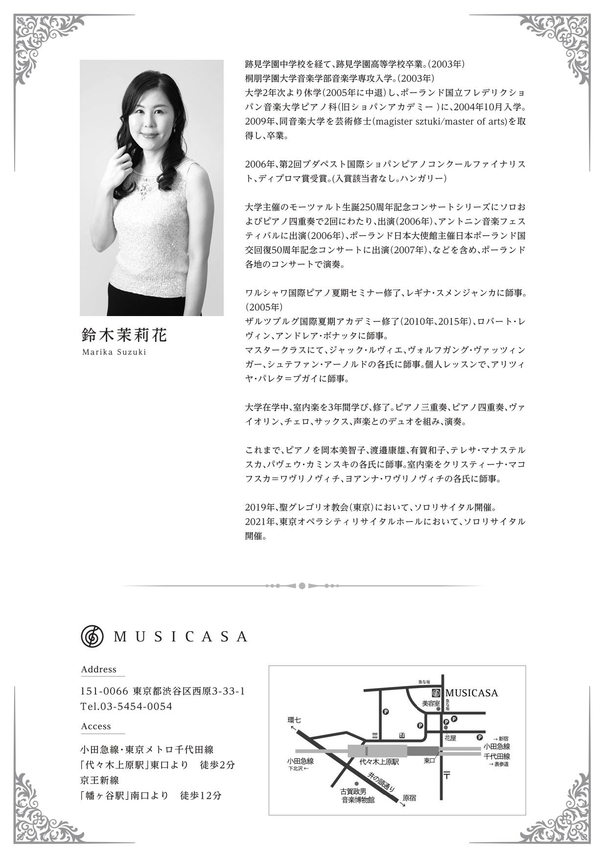 『鈴木茉莉花 ピアノリサイタル ~モーツァルト、ブラームス、シマノフスキの夕べ~』