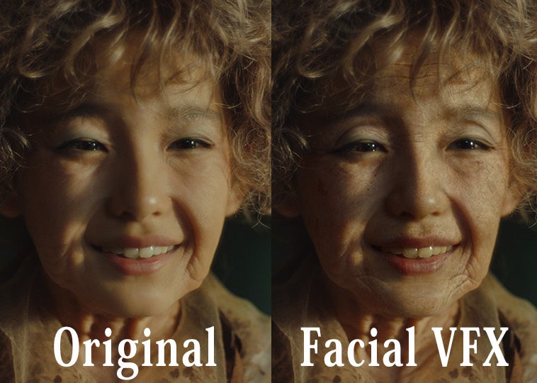 タレント撮影が1日しかないことの多いCM制作では、フェイシャルVFXのみで老化や若返りを実現できるメリットは大きいものです。