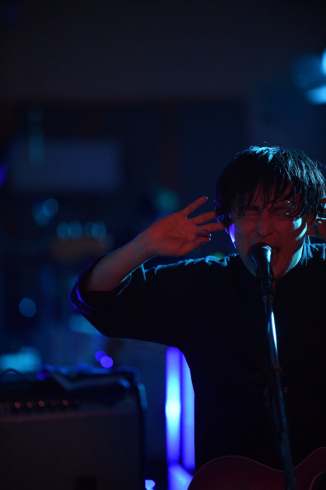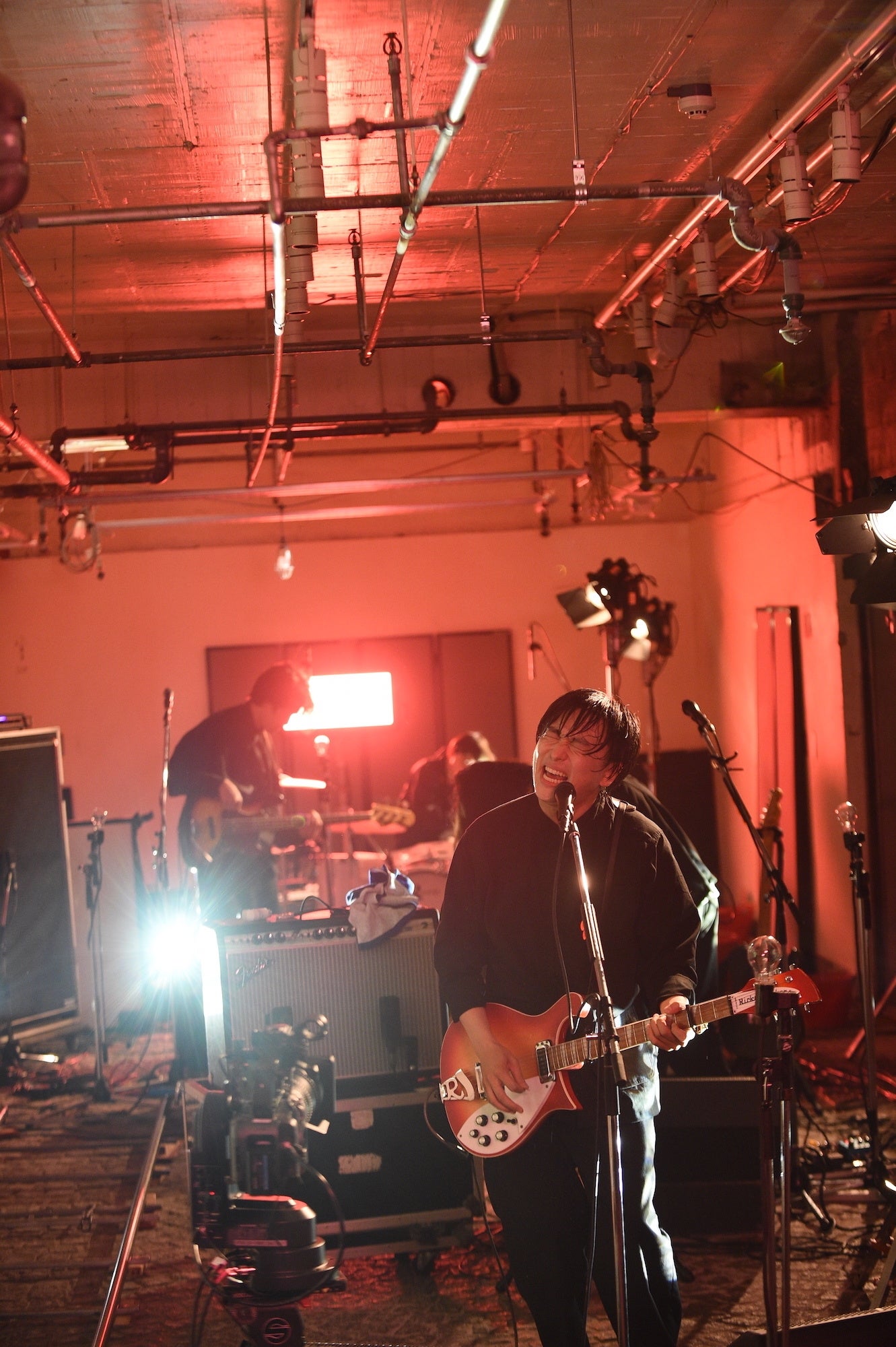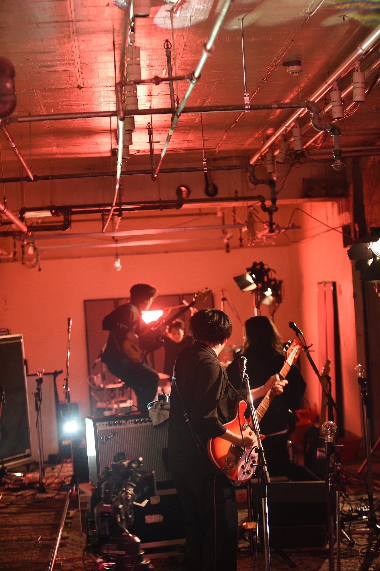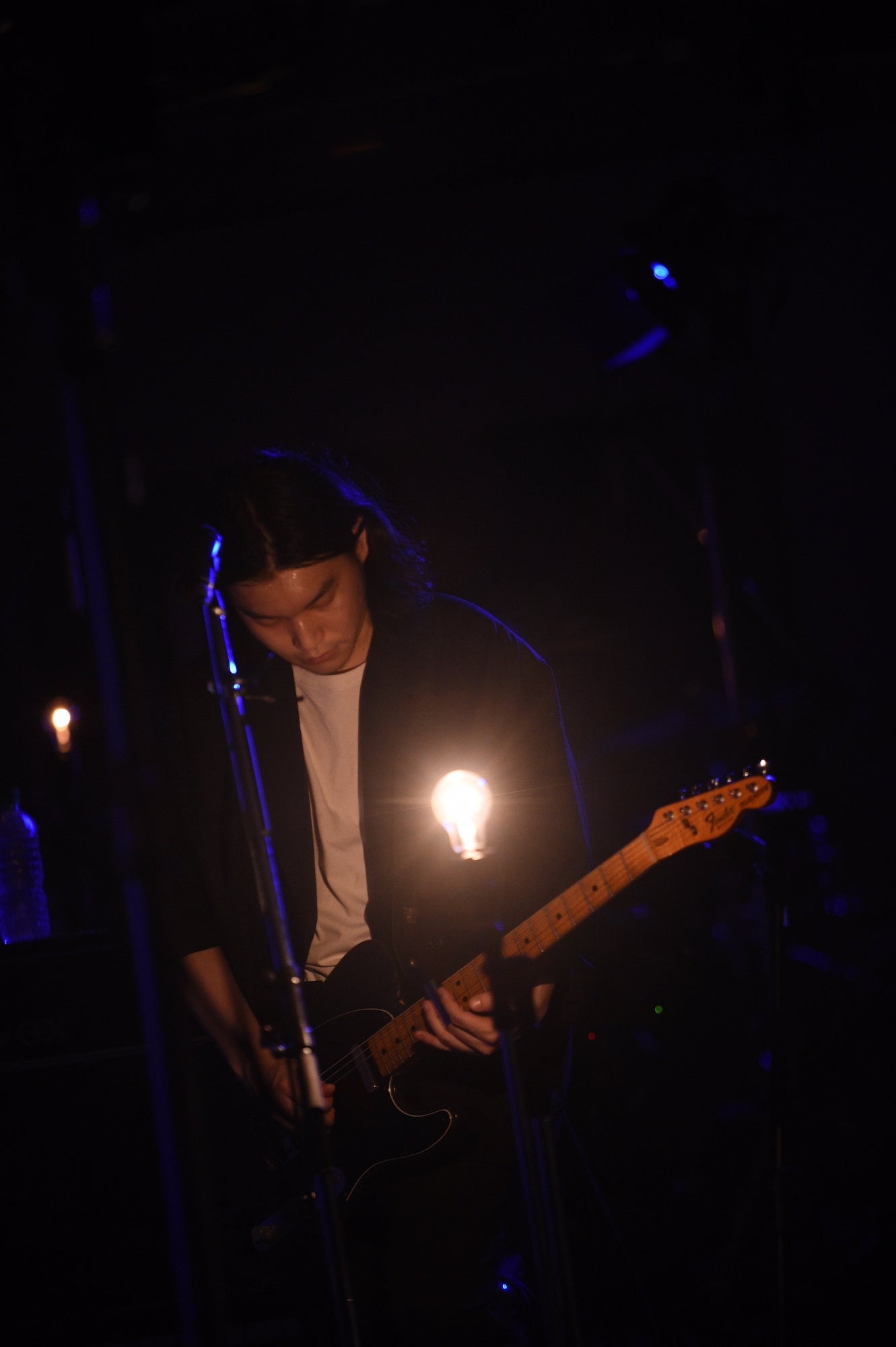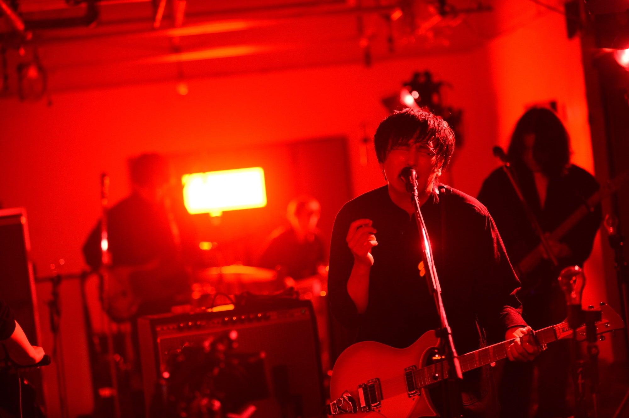 一転、青いライトに照らされてゆったりとしたテンポの「NEVERLAND」を切なく奏でると、メンバーが不穏なセッションを繰り広げる中、スタンドから外したマイクを手にした古舘が喋り出す。「今日は金曜日の夜です。銀座の地上ではきれいなお姉ちゃんとか裕福なおじさんとか、いろんな人がうろうろしていました。そんな中我々は地下にこもって4人で音を出しております。たぶん地上にはこの音は届かない。でも今日は一番大きい音を、ここ銀座で鳴らしたいと思います」。