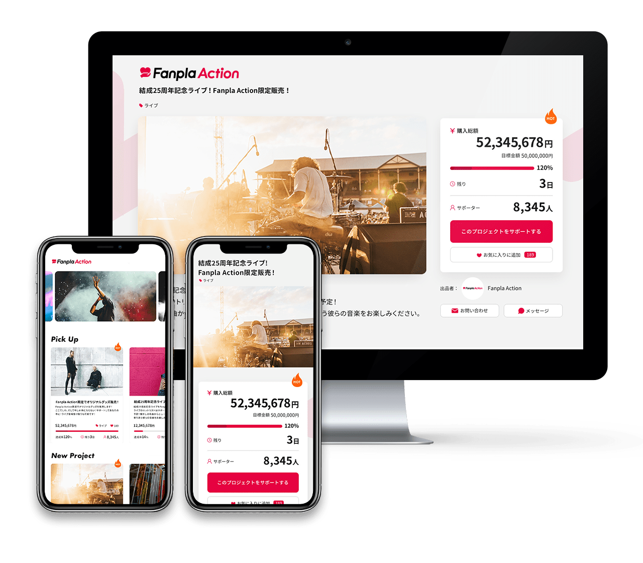 この度オープンしたクラウドファンディングサービス『Fanpla Action』は、従来の、主催者が実現したいことに支援者が協力するコンセプトだけではなく、アーティストとファンが一緒になって実現したいアイデアに向かって”アクション”する、「共創」をコンセプトとしており、クラウドファンディングをファンサービスとして利用いただくことを目的としております。