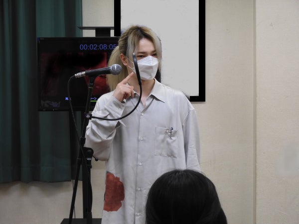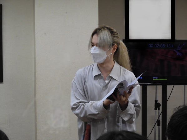 最後は、在校生と一緒にアフレコをしてくださいました。全身で演技をする姿、声は、参加者の方も在校生も一瞬で惹き込まれてしまうほどの凄い迫力。プロ声優の方のアフレコをこんなに間近で見ることはなかなか出来ないので、本当に貴重な時間でした。