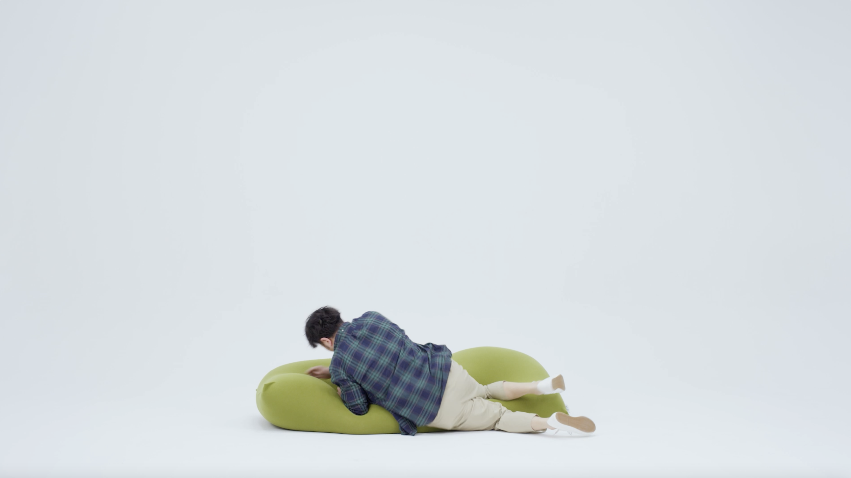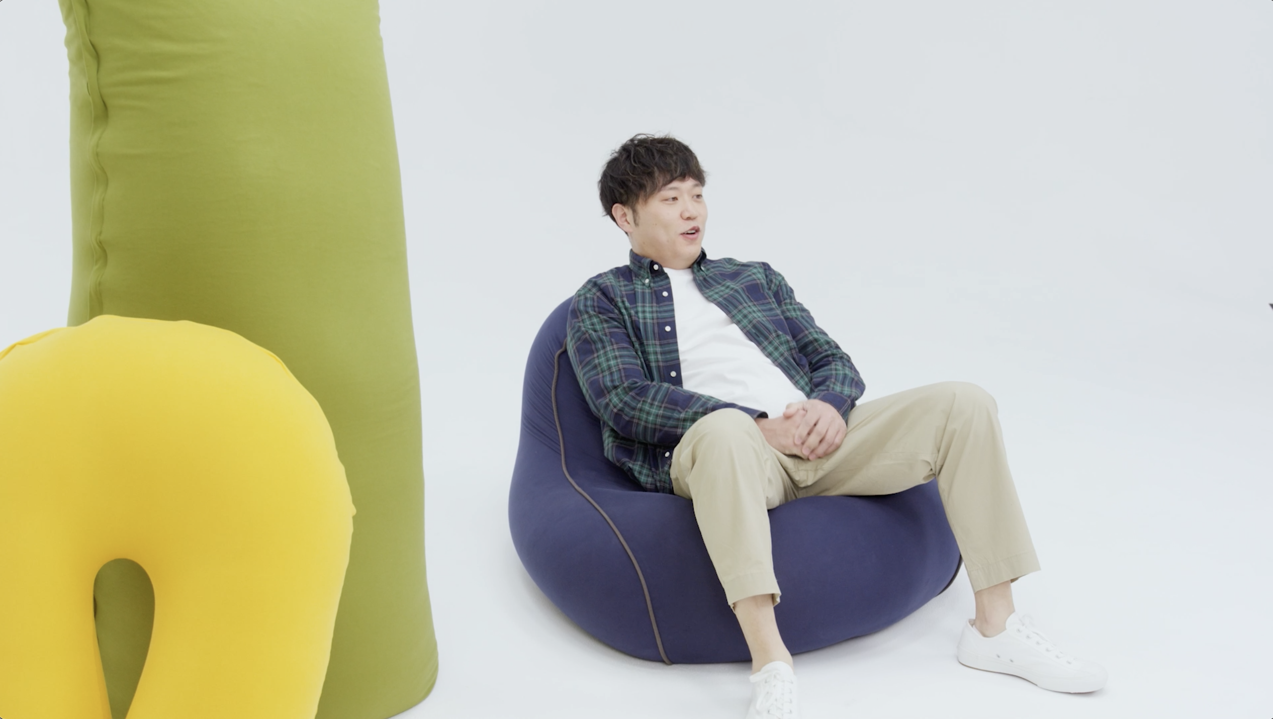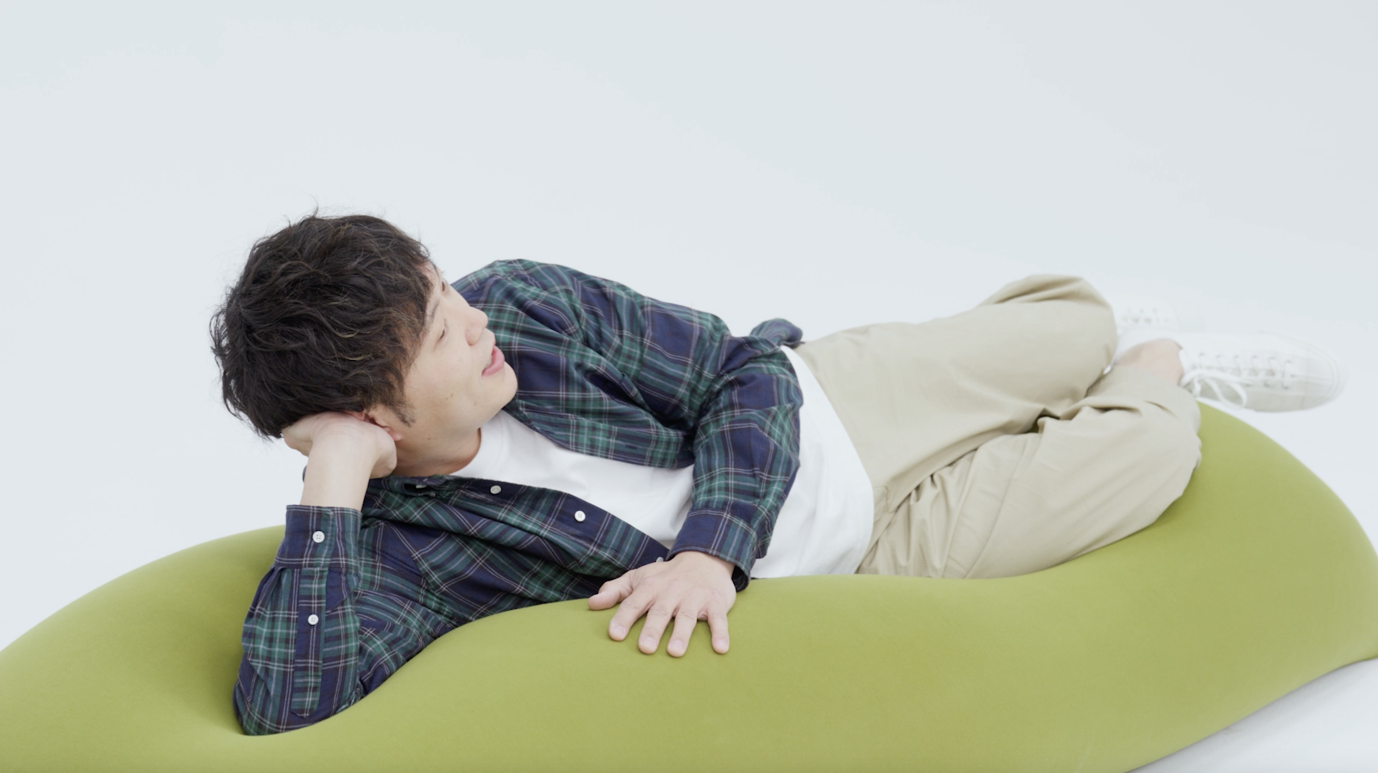 最後に、「でも、この寝そべった体勢のとき初心者の人は下り方が分からないらしいんですけど」と話すと、軽やかにYogiboから駆け降りるサイドスピンを披露。Yogibo歴4年ならではの熟練の使い方を、初心者に向けてコミカルに伝授してくださいました。