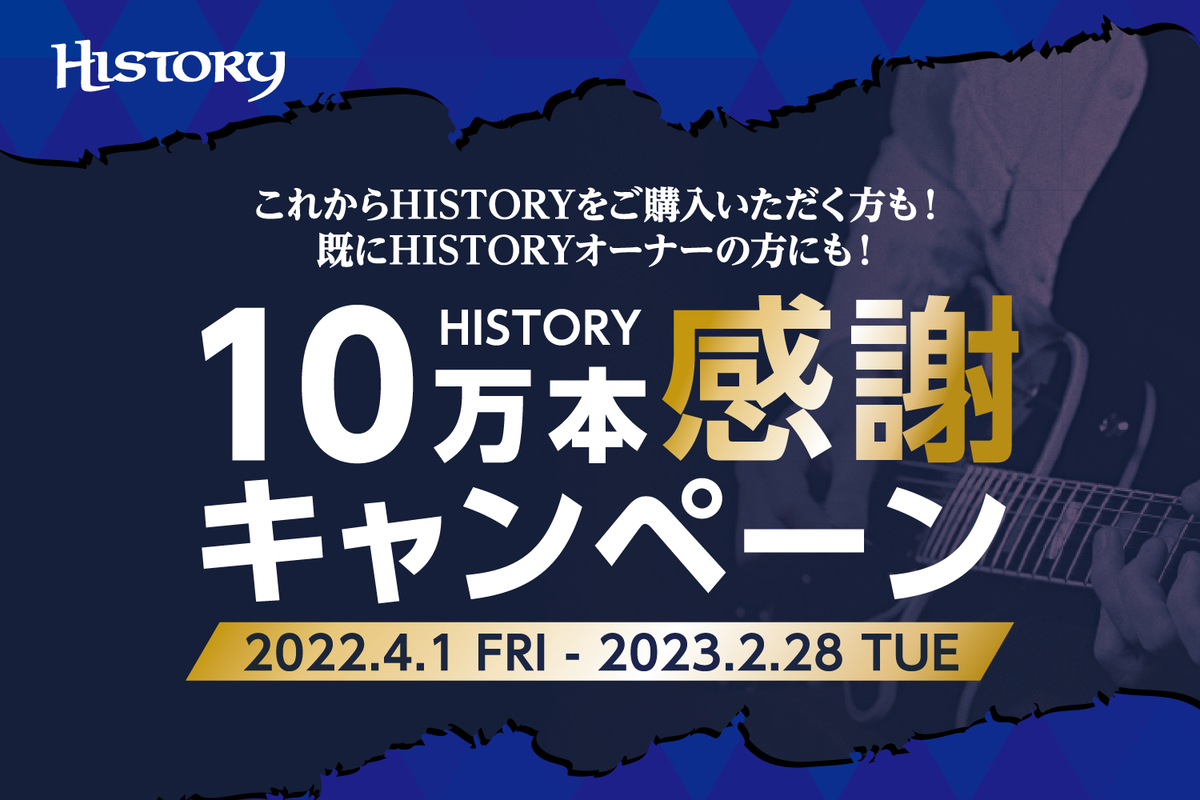 累計販売本数10万本に達したHISTORYでは日頃のご愛顧に感謝を込めて、キャンペーン期間中に島村楽器公式アプリ「島村楽器モバイル」に登録いただいたHISTORYオーナーの方を対象に、当社が提供する「スタンダード弦交換」と同等内容のメンテナンス・点検を無償提供いたします。