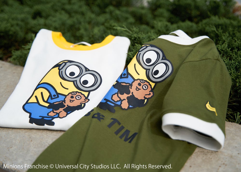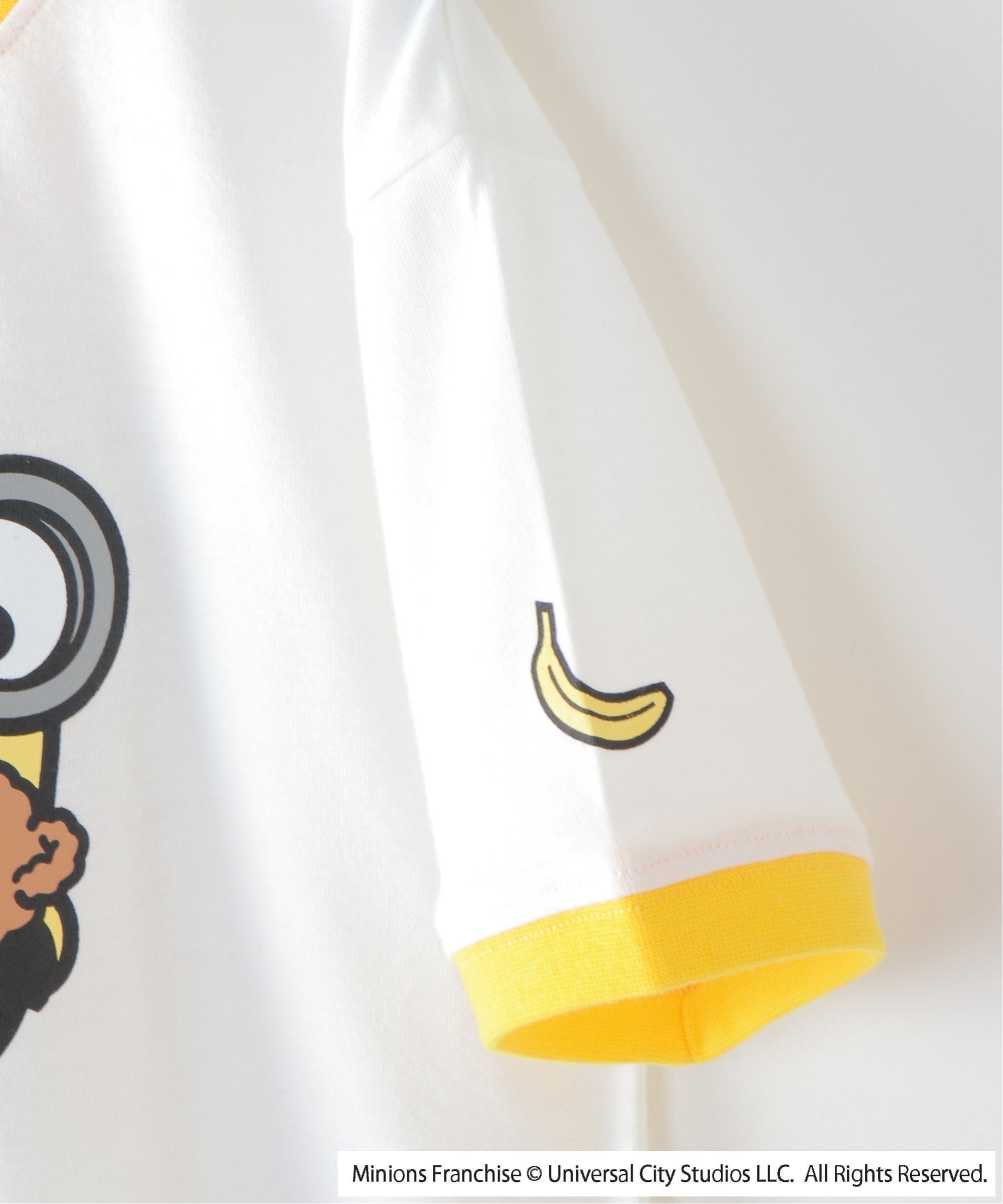 フロントデザインに加えて、首下部分や袖口に「バナナ」をプリントし、「ミニオン」らしさを感じられる仕様です。