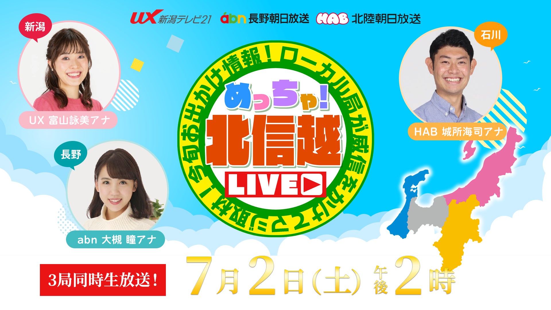 7月2日(土)午後2時~ ※UX新潟テレビ21・abn長野朝日放送・HAB北陸朝日放送にて同時生放送