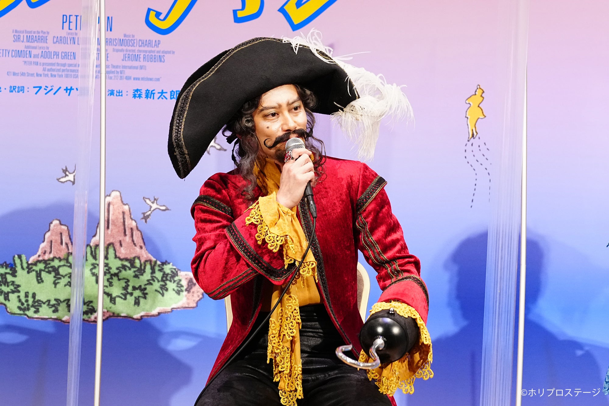 フック船長役 小西遼生:「去年から参加していますが、(コロナ禍で)制約の多い時期で、僕らキャストも色々なことを乗り越えてきました。特に嬉しかったのが、子供たちの声援や拍手。例えば知り合いの先輩役者さんがお子さん連れで観てくださって、そのお子さんは初めての観劇体験とのこと。大切な瞬間を共にしていると実感しました。僕らが演じるものを本当の世界だと思って観てくださる方々がたくさんいる作品。今年は去年以上にキラキラした世界をお見せしたい。そして咲良が演じる最後のピーターを、僕らも精一杯彩れるように頑張りたいです」