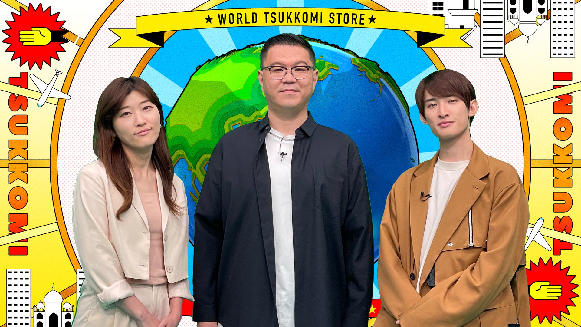 世界の思わずツッコみたくなるお店をタイ、南アフリカ、フランスの3カ国で調査!現地に住む日本人に街頭インタビューで調査をしてもらい、見つけたお店にリモート参加の芸人ディレクターとタッグを組んで潜入しました。芸人ディレクターは田渕章裕(インディアンス)、鬼越トマホーク、伊藤俊介(オズワルド)の3組。番組MCは、プライベートでも仲のいい長谷川忍(シソンヌ)、ヒコロヒー、向井康二(Snow Man)、の3名。オープニングトークが盛り上がりすぎて収録が押してしまうハプニングも…。スタジオではMCの3人が韓国と中継をして実際に芸人ディレクターを体験。仲良し3人がわちゃわちゃとツッコみます!お店だけでなく、芸人ディレクターやキャラの濃い現地リポーターへのツッコミにもご注目!さらに!Snow Man向井康二は、仲良しのシソンヌ長谷川からの無茶振りで、キレキレダンス披露!?