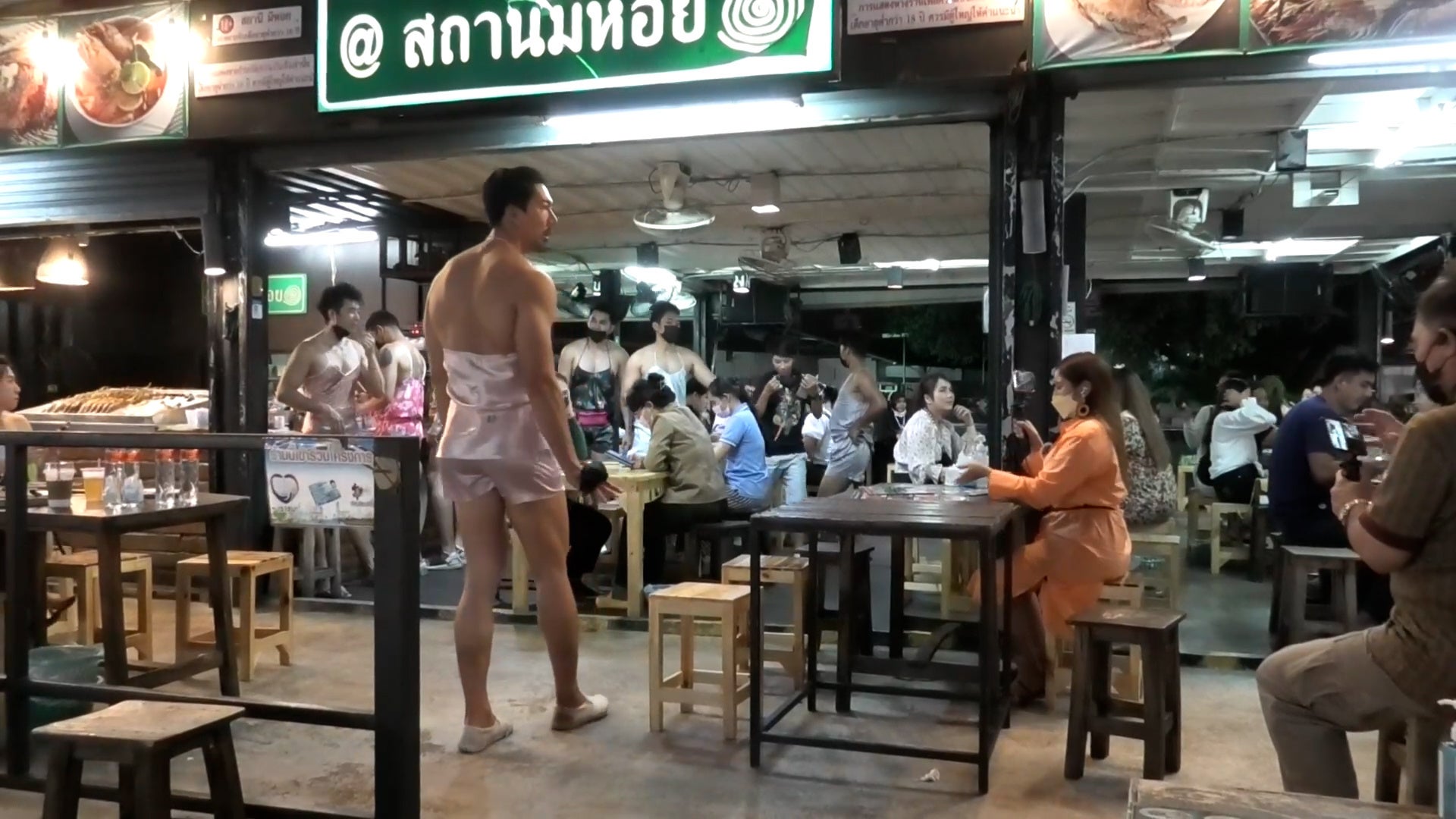 ●なんかクセになる!? マッチョが踊るレストラン!タイのナイトマーケットに潜入…!するとなんとも言えないゆる〜いダンスをするマッチョたちが…!スタジオでまさかの展開に…。