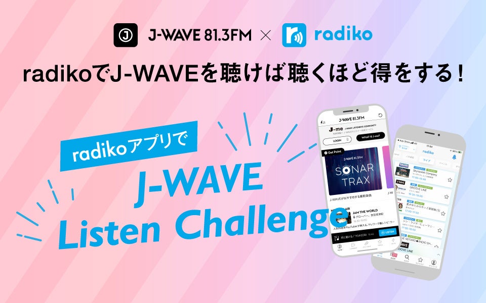 ラジオ局J-WAVE(81.3FM)では、リスナーとのコミュニケーションを最適化する独自のデータ・プラットフォーム「CUSTOMER COMMUNICATION PLATFORM」(通称CCP)を活用して、ラジオ業界初となる、“J-WAVEを聴けば聴くほど得をする”まったく新しいリスナーサービス「J-WAVE Listen Challenge」を7月よりスタートさせます。