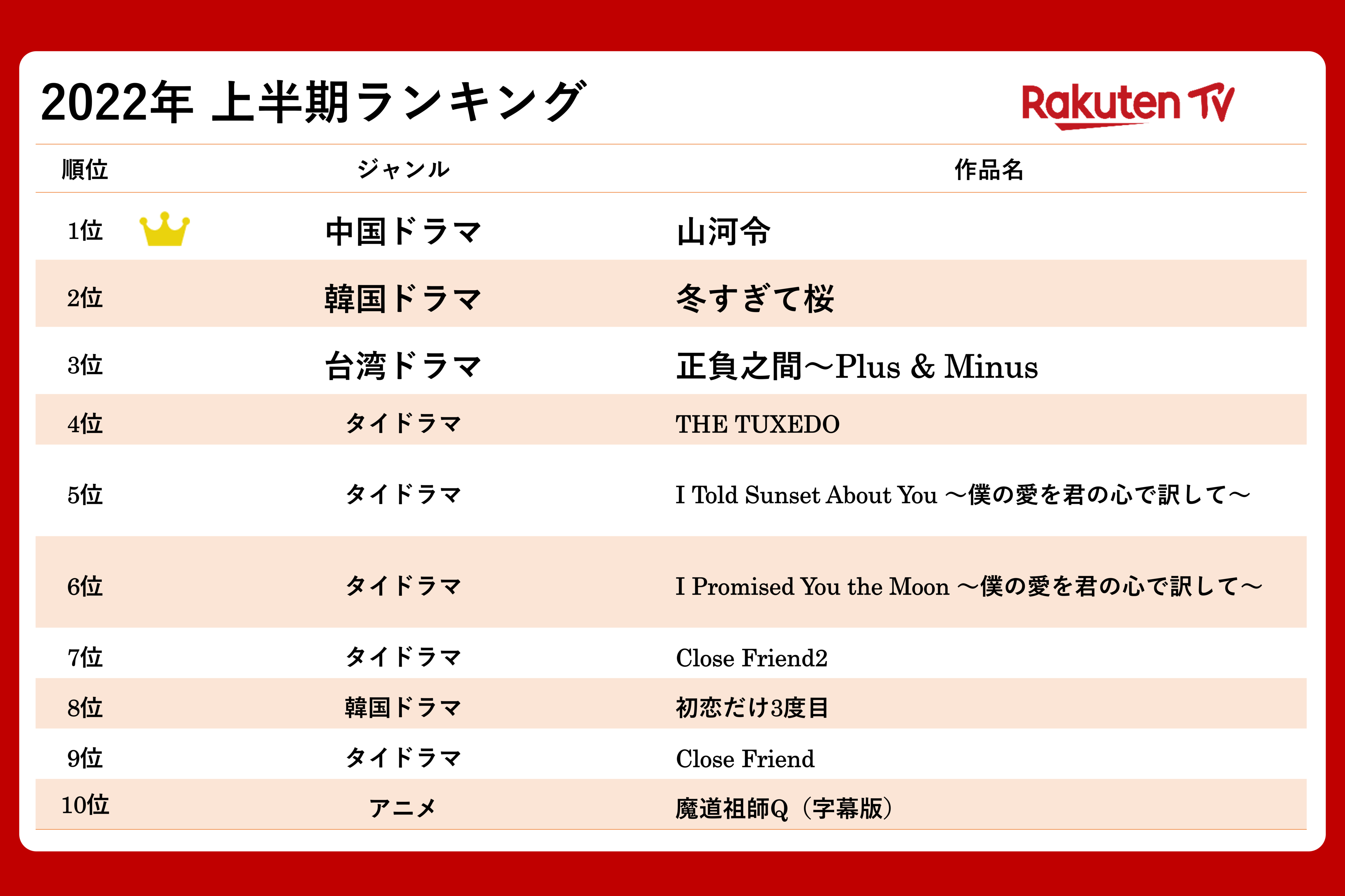 ■「Rakuten TV」2022年 上半期ランキング