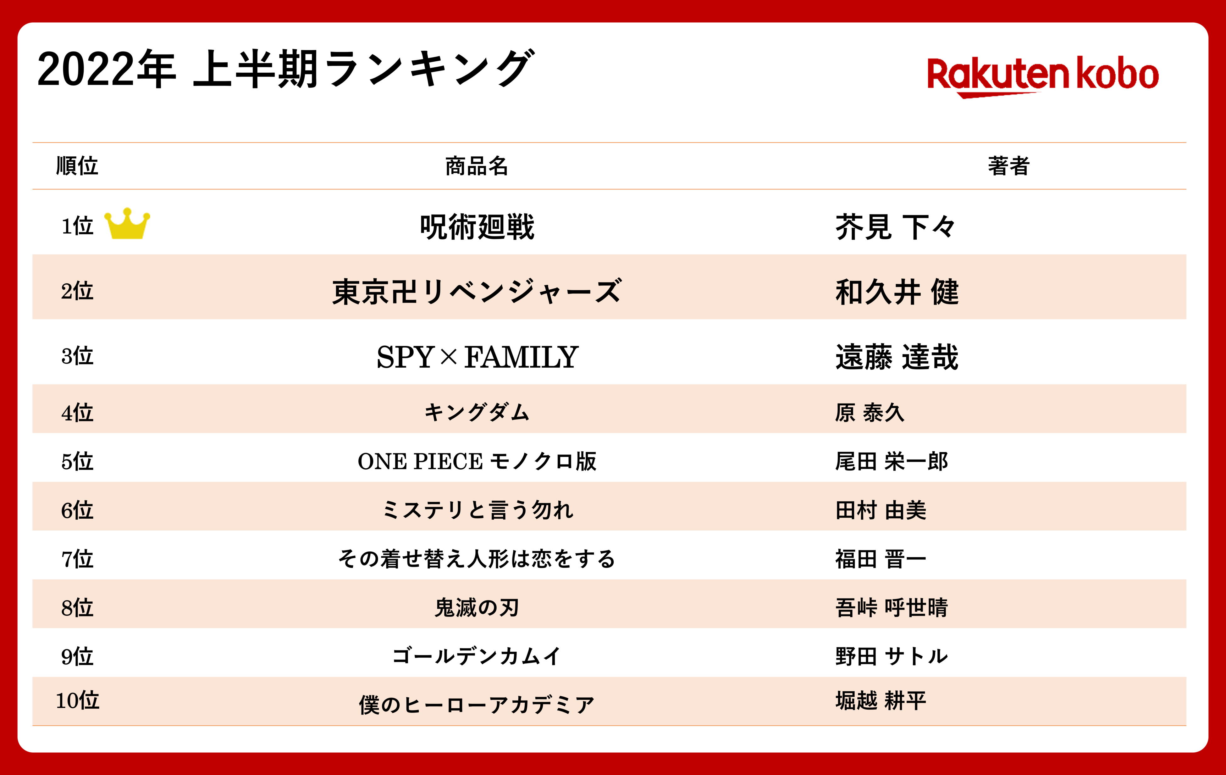 ・「楽天ブックス」2022年 上半期総合ランキングURL: https://books.rakuten.co.jp/event/firsthalf-ranking/