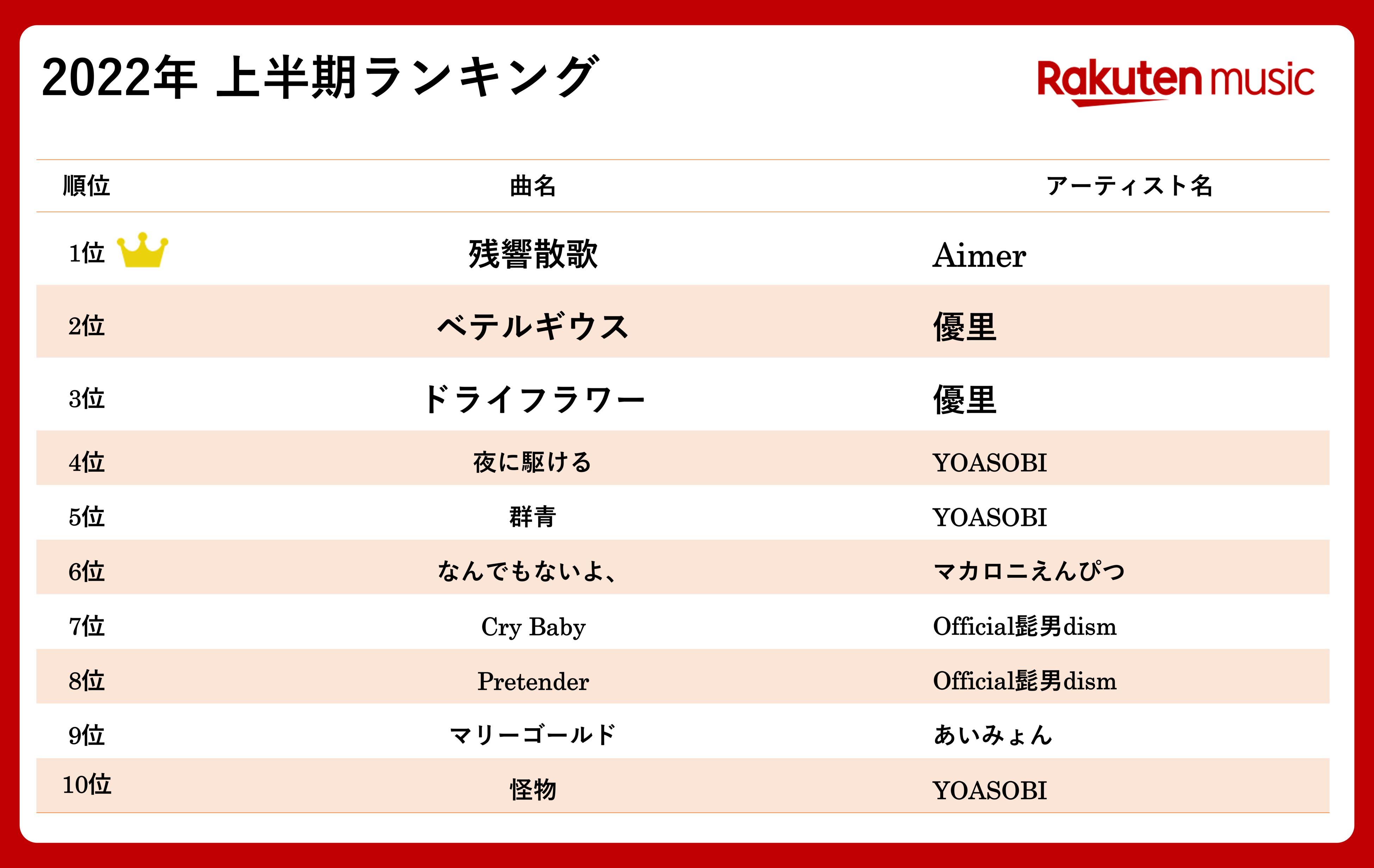 ■「Rakuten Music」2022年 上半期ランキング
