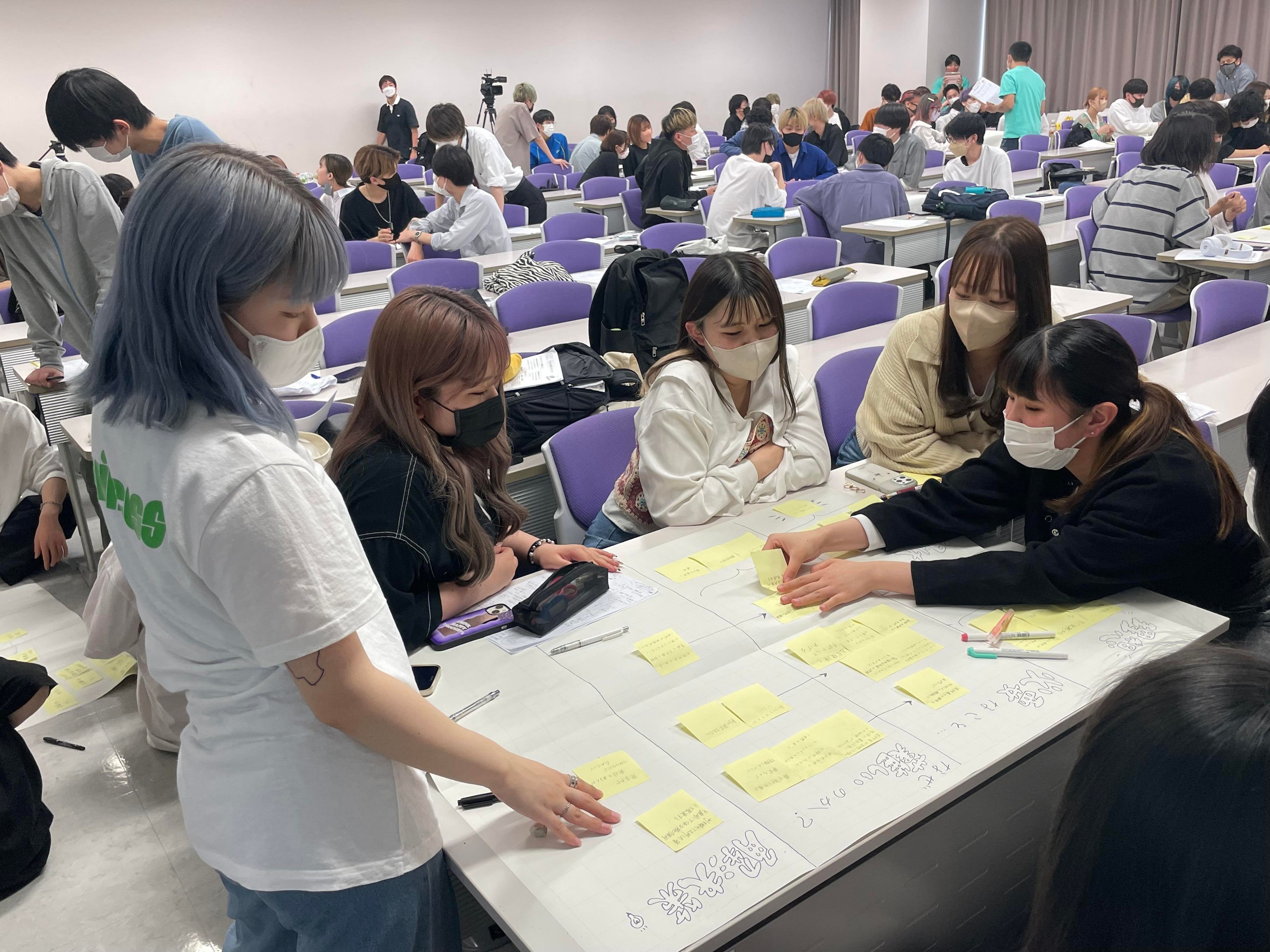 前半2時間で学生が選んだテーマに関する講演や体験を通して社会問題に関する知識をインプットし、後半の1時間30分で各テーマにおける解決策の立案をグループごとに実施しました。