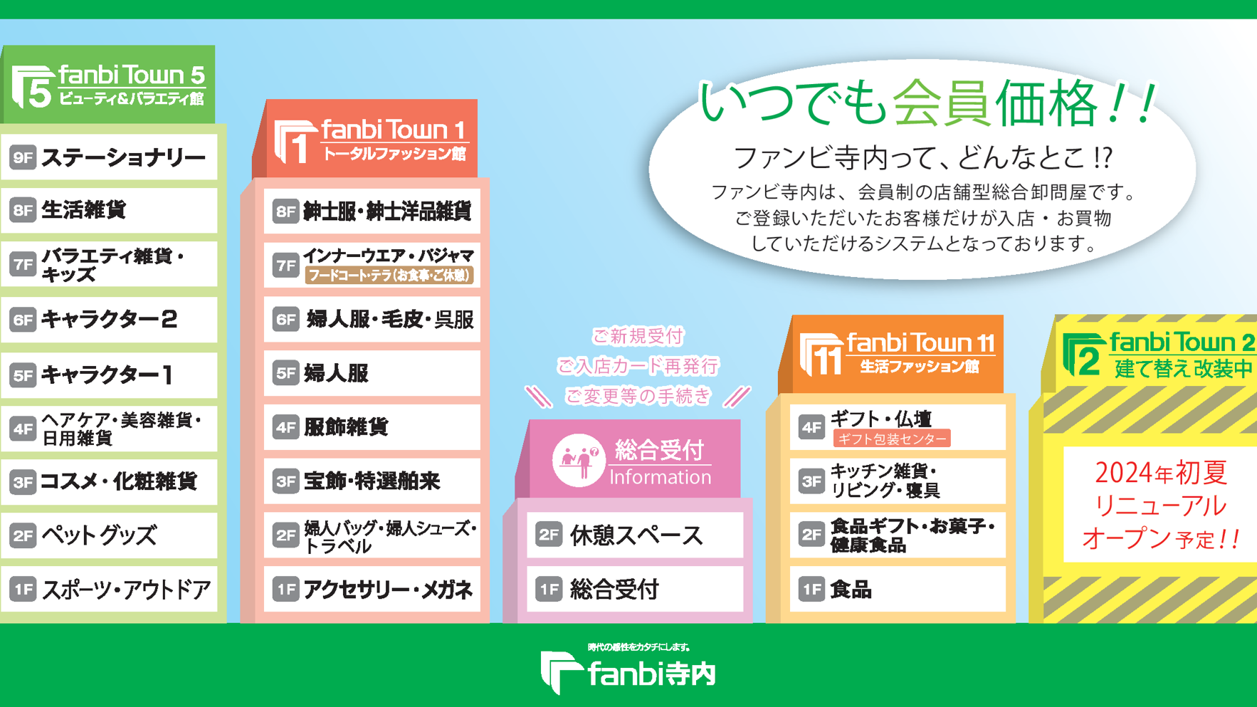 老舗の卸問屋「ファンビ寺内」が営業する会員制の店舗型総合卸問屋です。