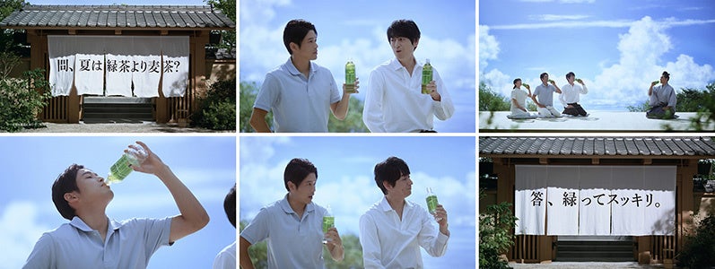 「伊右衛門の会 夏は緑茶より麦茶?」篇では、本木雅弘さん演じる伊右衛門はんと、博多大吉さん、内田篤人さん、芦田愛菜さんの4人が、夏らしい青空の下に集結。「夏は緑茶より麦茶じゃないですか?」と問いかける内田さんが伊右衛門を飲むと、スッキリとした味わいに思わずごくごくと飲み干してしまう様子が描かれ、淹れたての緑茶のような緑の伊右衛門が、夏も変わらずにおいしいことを訴求しています。内田さんが伊右衛門を豪快かつ爽やかに飲み干す姿にご注目ください。