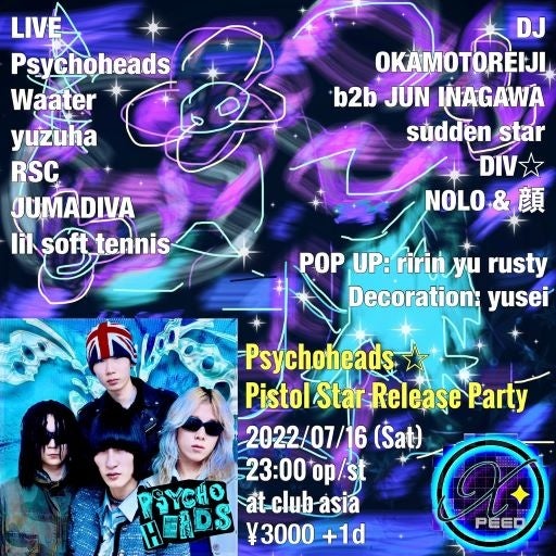 パーティーには<XPEED>のメンバーの他、DJとしてオカモトレイジやJUN INAGAWA、Lil Soft TennisやJUMADIBAといったHIPHOPのライブアクトなど、Psychoheadsを敬愛する面々が出演する。