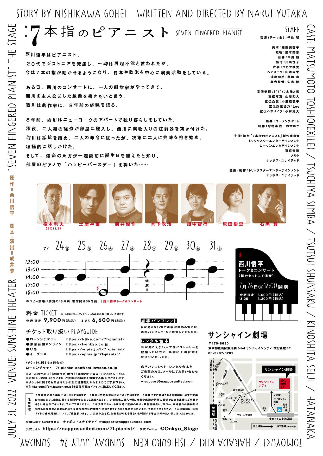 なお、舞台『7本指のピアニスト~泥棒とのエピソード~』のチケットは各プレイガイドにて発売中。