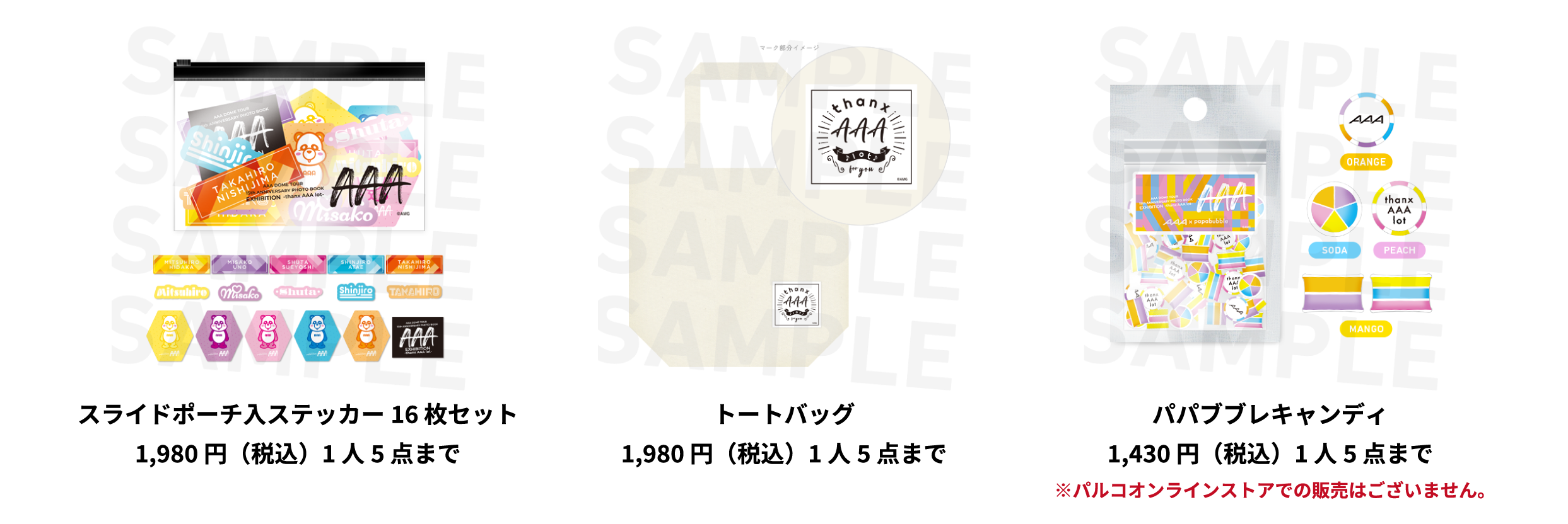 本展覧会では販売中の写真集『AAA DOME TOUR 15th ANNIVERSARY –thanx AAA lot- PHOTO BOOK』に掲載の貴重なカットの写真や、ステージ上で着用されたメンバー衣装、来場者が記入できるメンバーへのメッセージボードなどを設置。また、メンバーそれぞれのライブMCでのコメントなどを聞くことができるスポットも登場します。