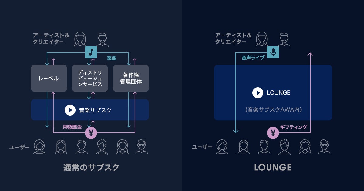 また、機械的にレコメンドされた楽曲や他人からのなおすすめ曲などに、あまり興味のないユーザーに対しては、カラオケやミュージックバーのように同じ空間で楽曲を聴くことで、自然に新しい音楽と出会うことができるLOUNGEが、新しい音楽との出会いに役立つと考えています。今回、7周年を機にこれまでアーティストや一部のユーザーのみ利用可能だった、LOUNGE(ラウンジ)の「音声ライブ配信」「ギフティング)による収益化」機能を全ユーザーに解放しており、さらに多くのユーザーに楽しんでもらえるものとなりました。