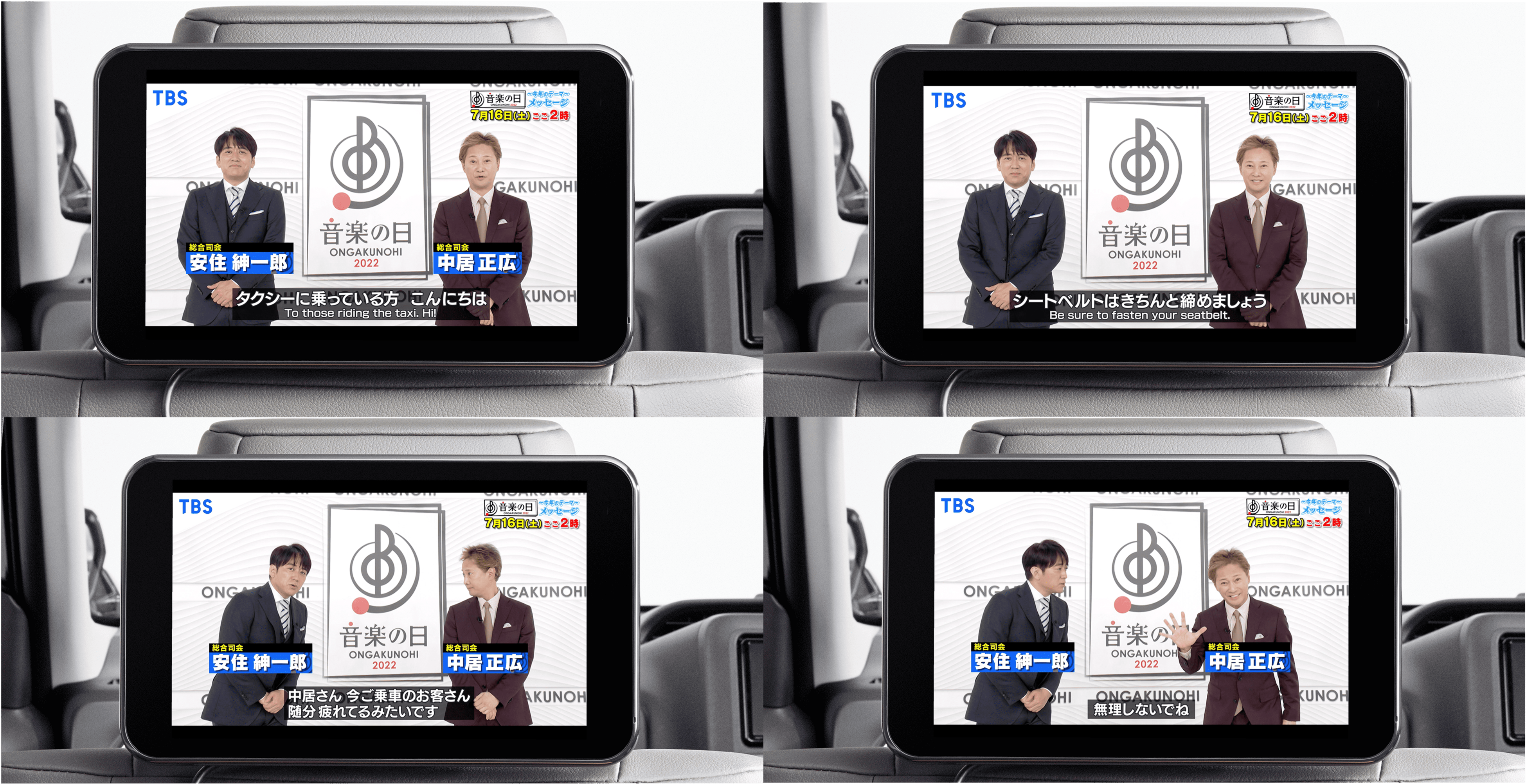 この度、TBSの人気番組・新ドラマなどの豪華出演陣が13週連続で、シートベルト啓蒙映像に登場。13週連続のシートベルト啓蒙映像の放映は、「GROWTH」初の取り組みであり、タクシー限定で撮り下ろした出演者からのコメントなど、タクシー車内でしか観ることのできない映像をお楽しみいただけます。記念すべき第1週目は、7月16日(土)放送予定の「音楽の日」において、総合司会を務める中居正広さん・安住紳一郎アナウンサーが登場します。