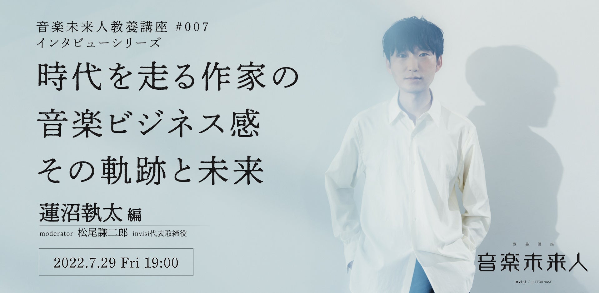 株式会社インビジ(代表:松尾謙二郎、以下インビジ)と、多目的スペース「御茶ノ水RITTOR BASE(リットーベース)」(運営:株式会社リットーミュージック)は、音楽ビジネスの未来を多彩なゲストとともに考える連続イベント 「音楽未来人教養講座」の第7回「時代を走る作家の音楽ビジネス感 その軌跡と未来 蓮沼執太編」を7月29日(金) に開催します。