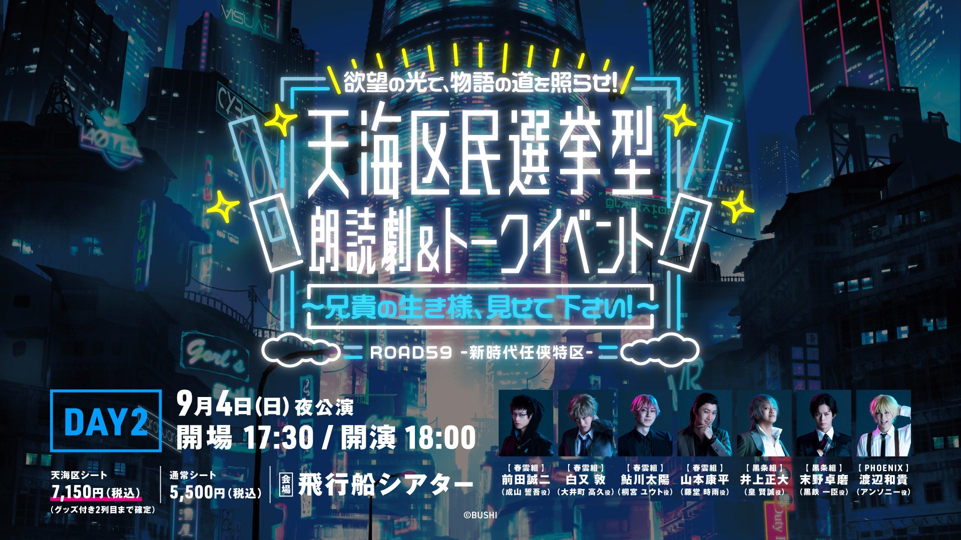 ●「ROAD59 -新時代任侠特区- 天海区民選挙型 朗読劇&トークイベント」天海区シート抽選先行