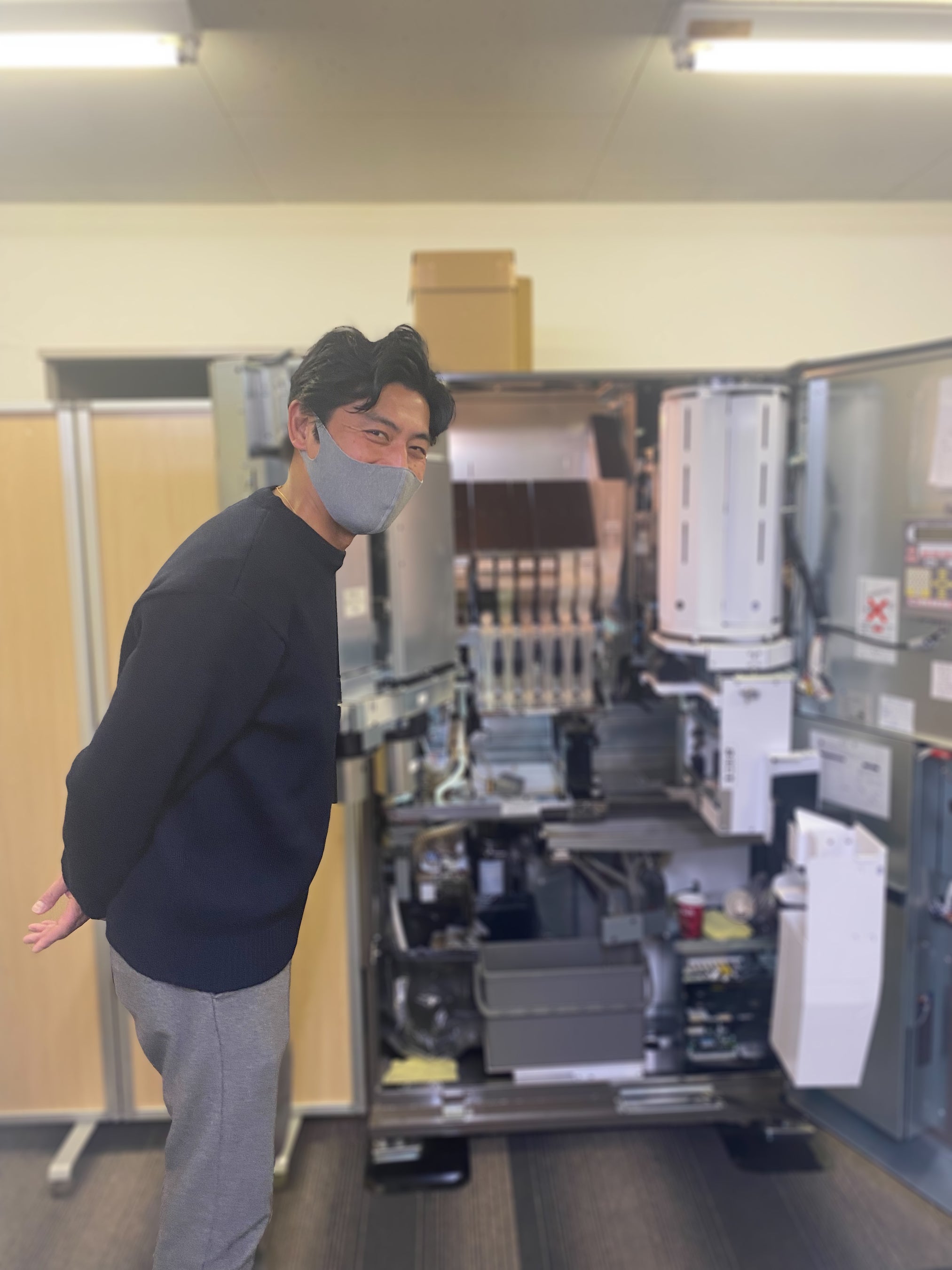 トーヨーベンディングの自動販売機「アドマイヤ」は、コーヒーの抽出に使う粉量、挽目、時間、撹拌、抽出時の圧力をすべて変更することができました。そこで抽出レシピを変更し、ザライジングサンコーヒーの納得する味わいを再現することに。