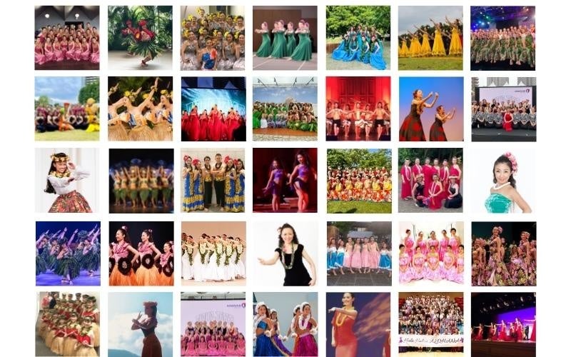 ショーを披露してくれるグループは、国内で活躍するトップレベルのフラ&タヒチアンチーム。コンペティションで受賞経験のあるグループや、歴史あるフラハラウ(フラ教室)、人気のダンサーさんなど、つい見惚れてしまう美しいショーは必見です。<出演グループ(一部)>