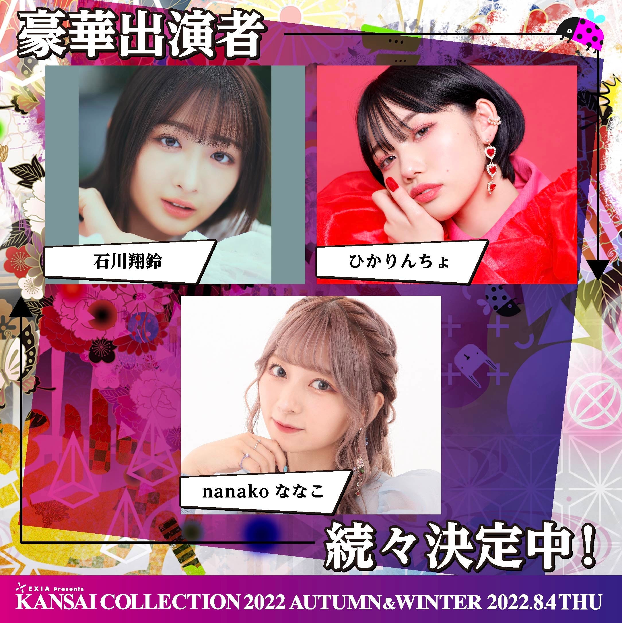 関西コレクション実行委員会(企画/制作:株式会社KANSAI COLLECTION)は、2022年8月4日(木)に、京セラドーム大阪にて『EXIA Presents KANSAI COLLECTION 2022 AUTUMN & WINTER』を開催いたします。この度、追加出演者情報が決定しましたので、お知らせいたします。