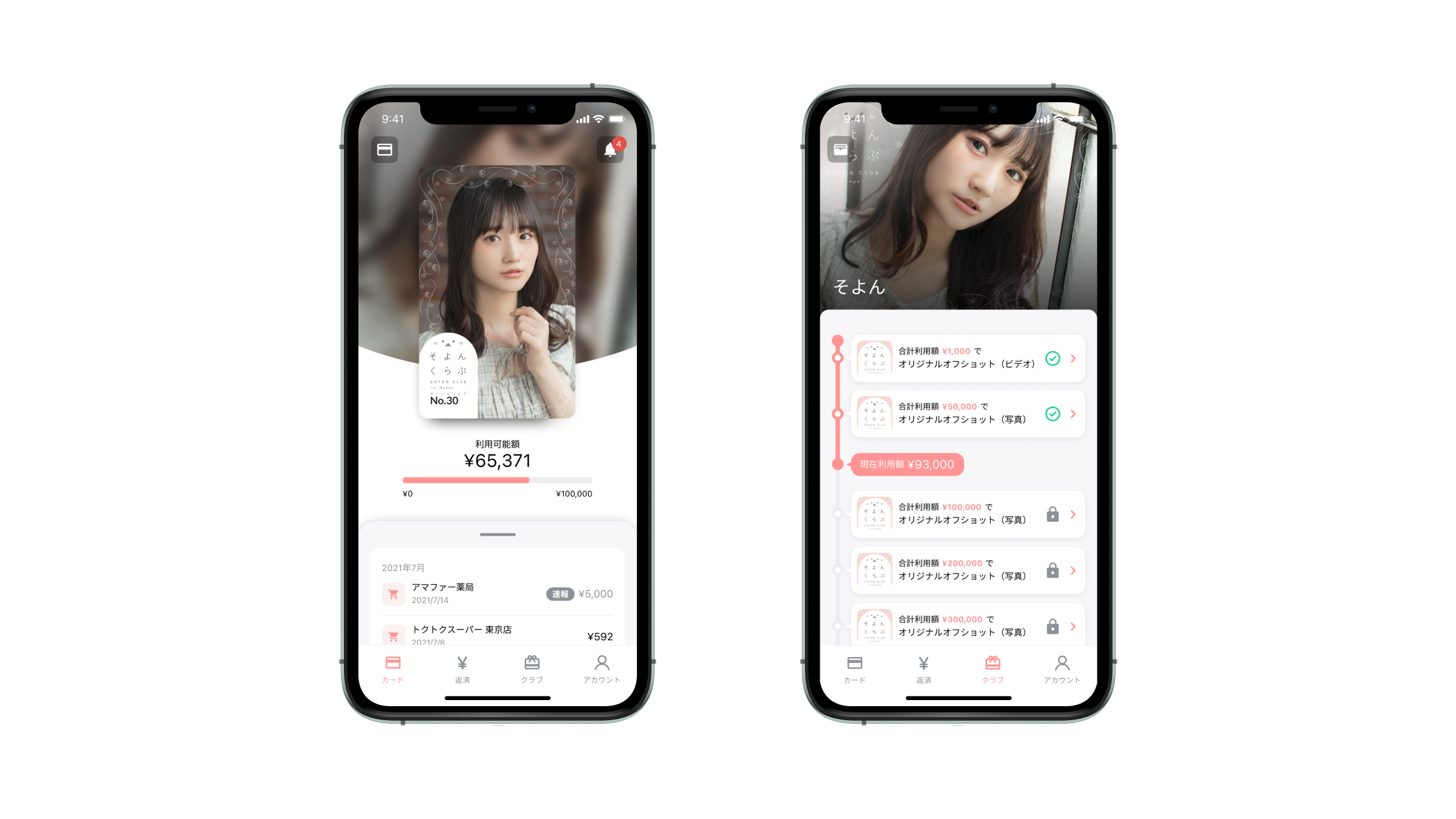 「そよん」クラブユーザー様は、普段のお買い物などでNudgeカードをご利用いただくだけで、そよんの応援ができます。さらに、Nudgeカードのご利用金額に応じて、限定のオフショットや限定動画等、そよんの限定特典がもらえます。