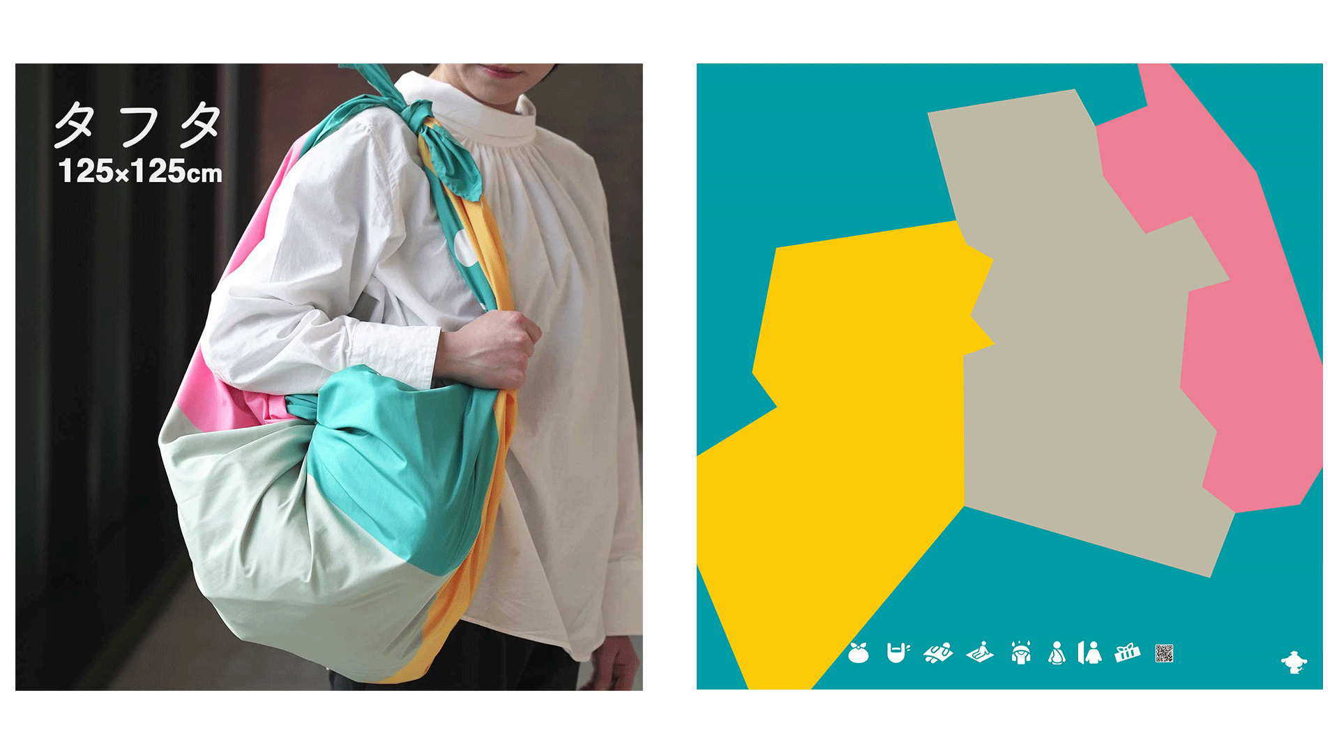 「防災風呂敷 福つなぎ」は水を包めるほどの超撥水性のある生地を採用し、災害時にも安心して使用できる商品です。