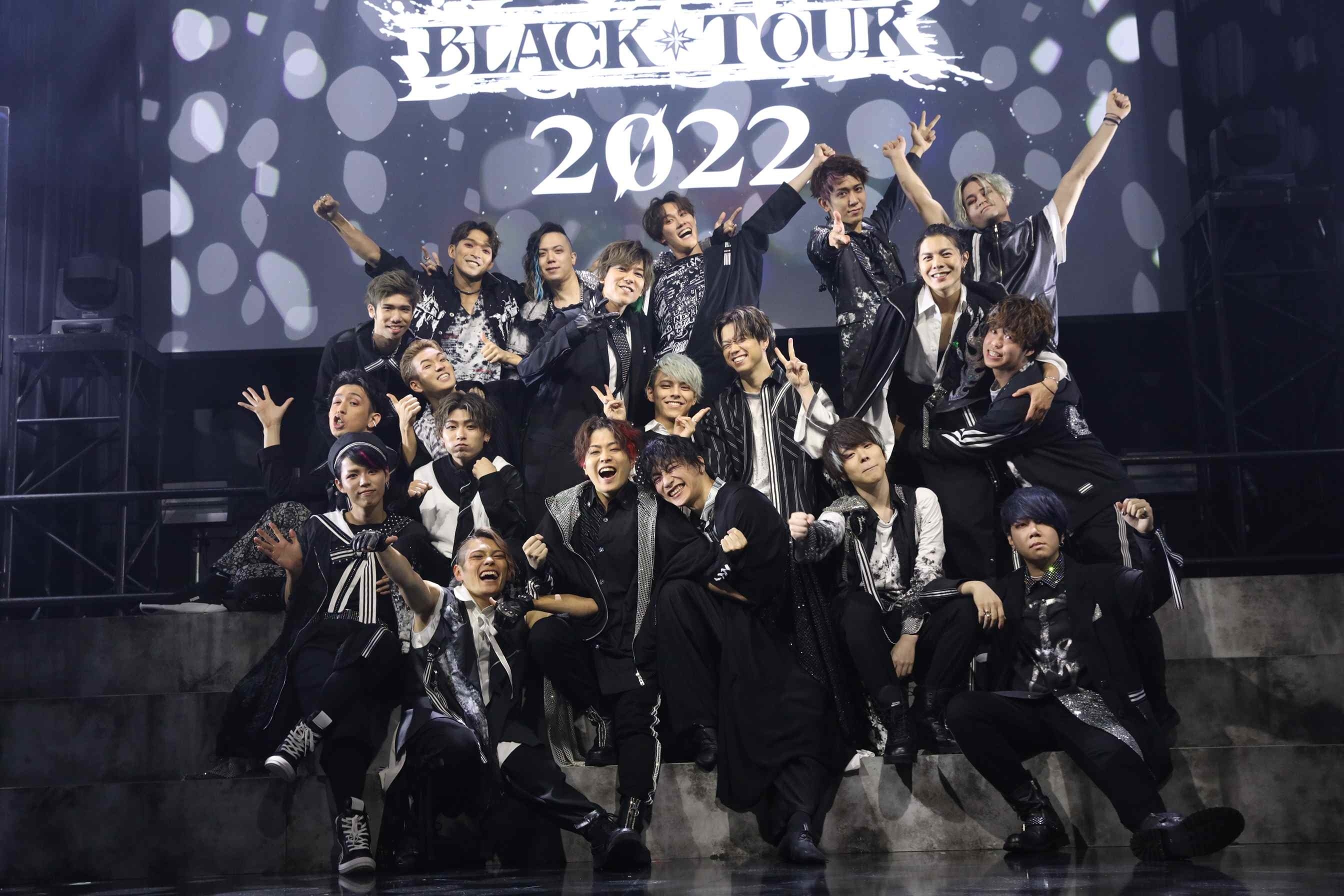 5月3日に始まり、2ヶ月にわたって日本列島を駆け回った『BLACK TOUR 2022』。実は最後の「天魔の宴」「Shooooout!!!」は今回のツアーでは初披露だった。この2曲を最後に、キャスト歌唱曲全95曲を披露したと、楽曲のアウトロで小林がネタバラシすると、後ろのスクリーンには全95曲の楽曲タイトルが流れる。そして小林に続いて、齋藤、松本、あじっこ、Kradness、スタンガン、IDE、しゃけみー、全てのシンガーがやり切った笑顔で挨拶。シンガー8名、ダンサー12名、「A HAPPY NEW YEAR!」の晴れやかな声を列島に刻み付け、キャスト実装曲を全て歌い踊り切るという挑戦的な『BLACK TOUR 2022』は幕を閉じた。
