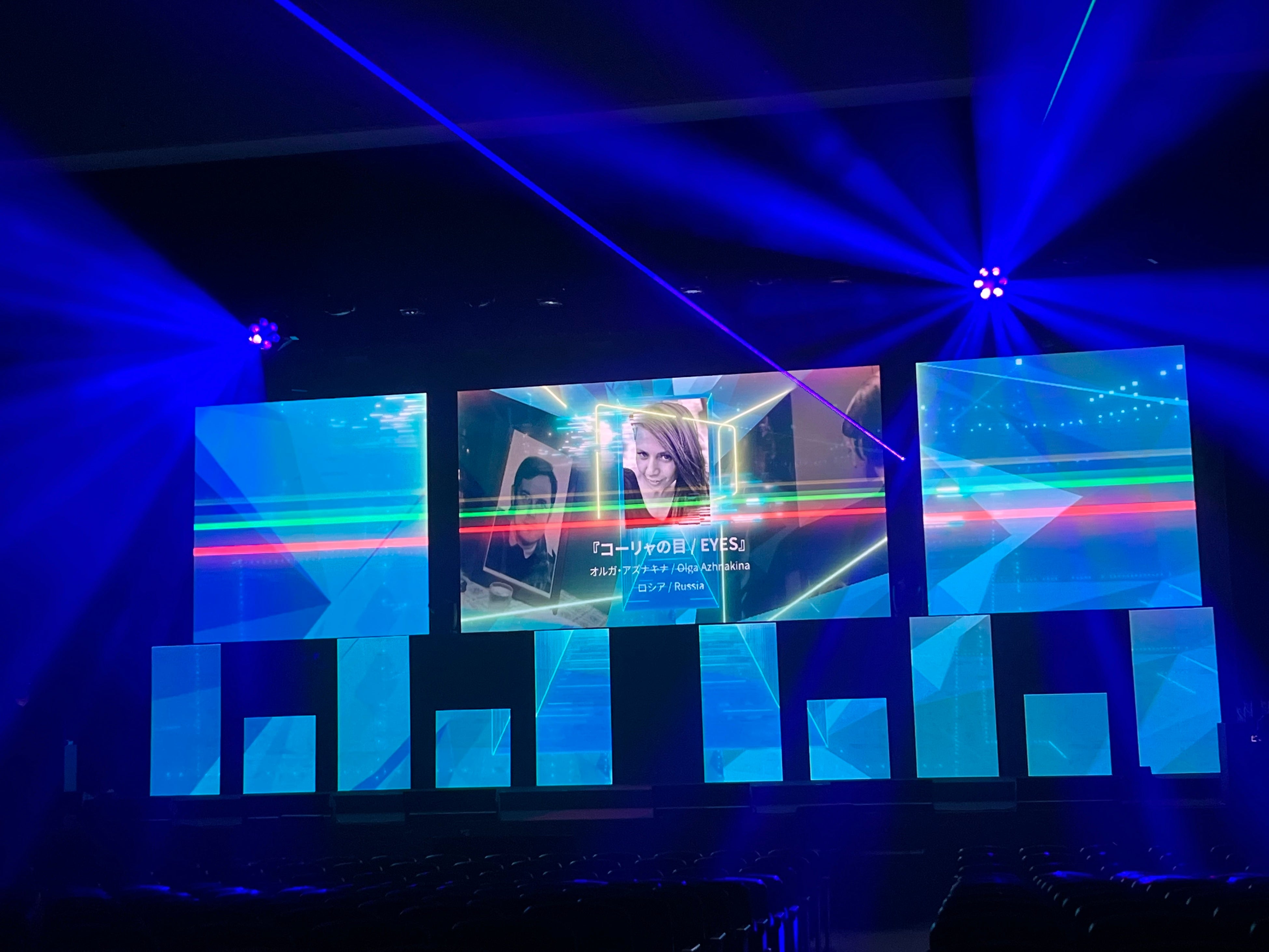 基本LEDビジョンは長方形や正方形の大きな1面をイメージするかもしれないですが、実はこんなにもいろんな可能性があります。LEDビジョンを使用した舞台演出がワンパターン化している場合は、今回の事例のようにさまざまな形にチャレンジしてみるのもアリなのでしょうか?