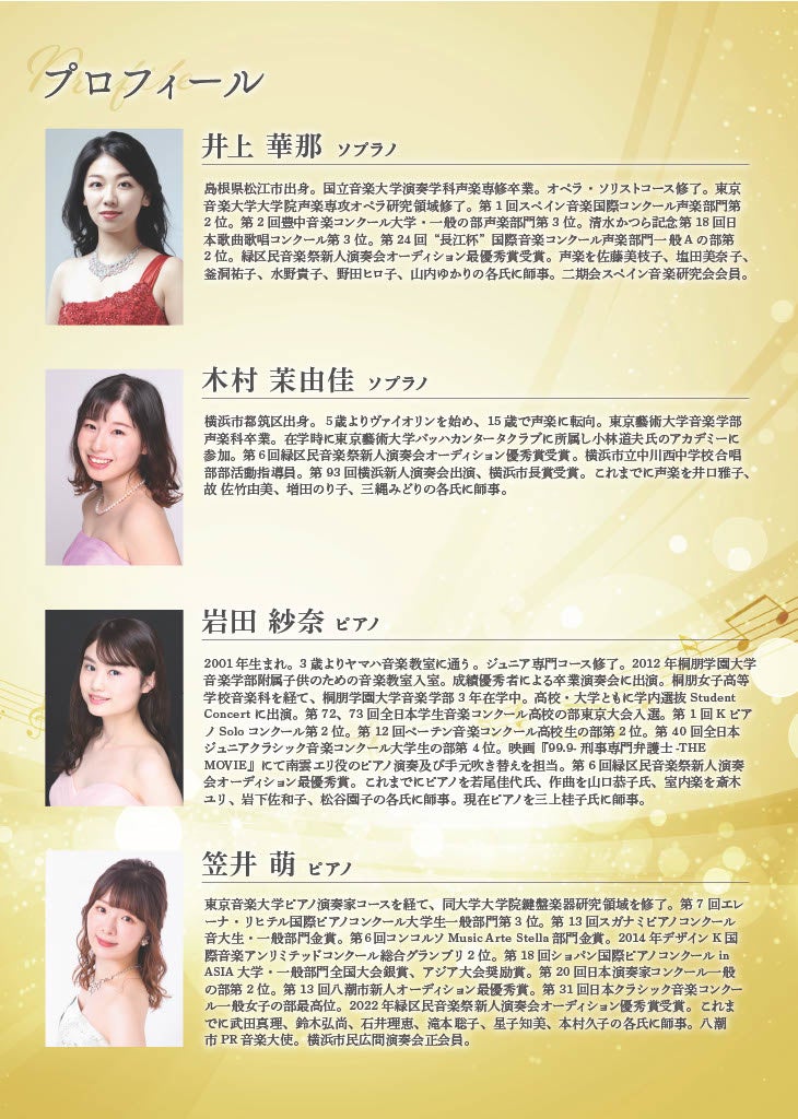 出演者は声楽部門:井上華那・木村茉由佳、ピアノ部門:岩田紗奈・笠井萌。