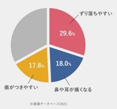 メガネユーザーの3人に1人が【メガネがズレる】、5人に1人の方が【鼻や耳が痛くなる】という“お困り”を抱えています。コロナ渦によって相まった、在宅勤務やデスクワーク、家事の増加でメガネを掛ける機会が増えた昨今、このようなお困りごとは顕著になりました。