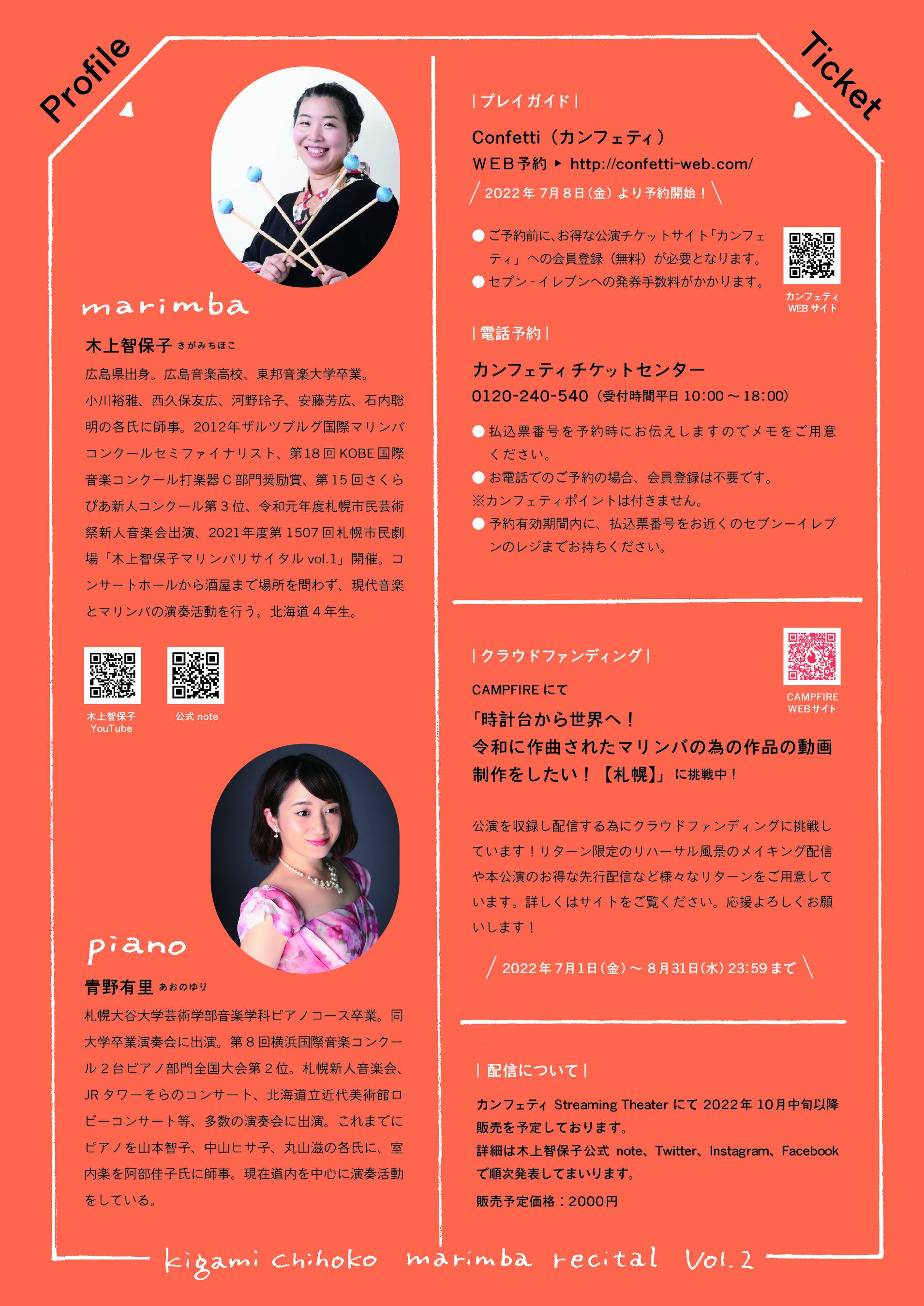 Chihoko&『木上智保子マリンバリサイタルvol.2』が2022年9月9日(金) に札幌時計台ホール(北海道札幌市中央区北1条西2丁目)にて開催されます。