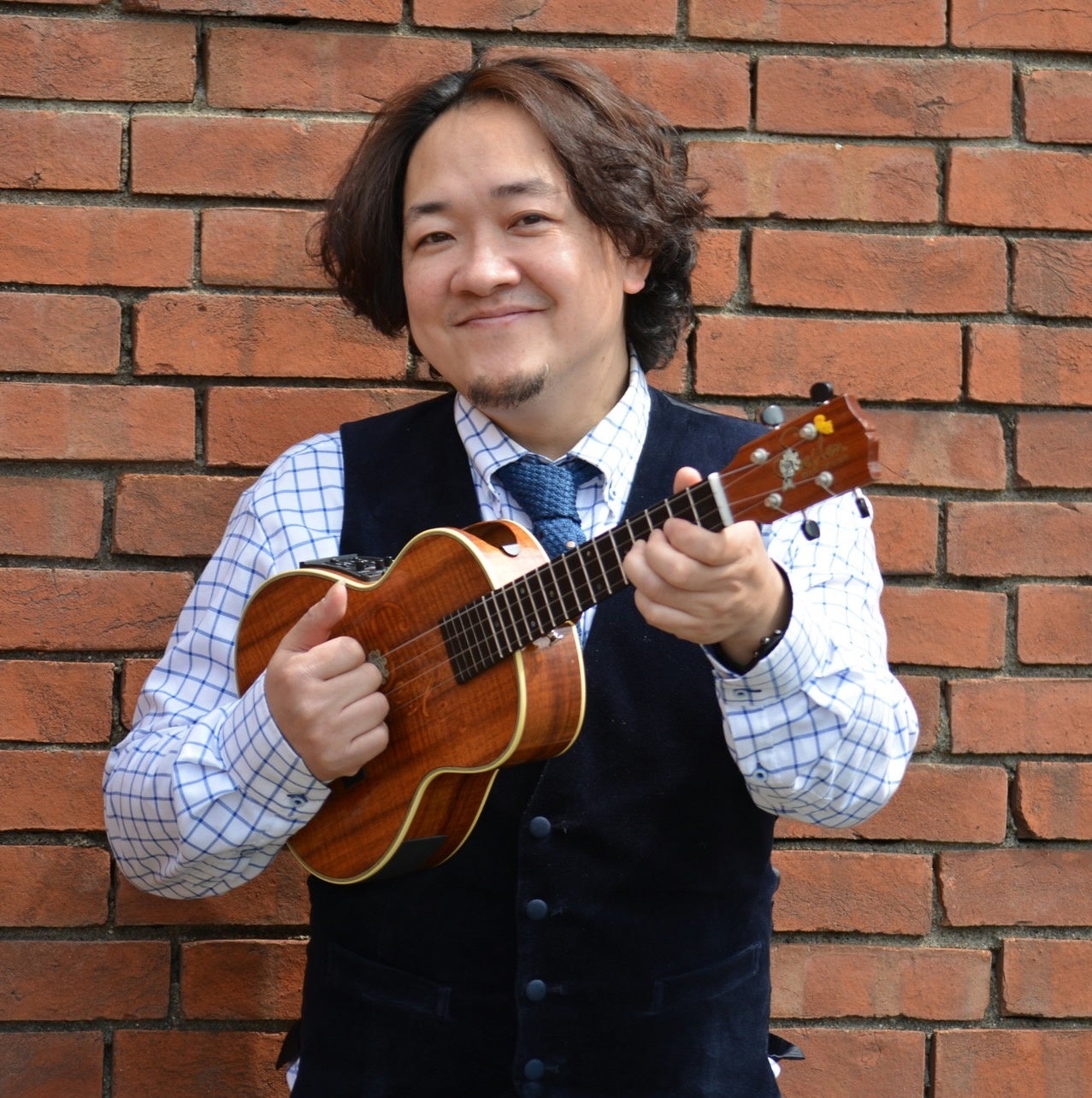 ウクレレは長野県茅野市に工房を構えるハンドメイドウクレレ・セイレンのカスタムモデル『SLC-300gカスタム』『SLT-550カスタム』を愛用し、セイレン・オフィシャルアーティストに就任。