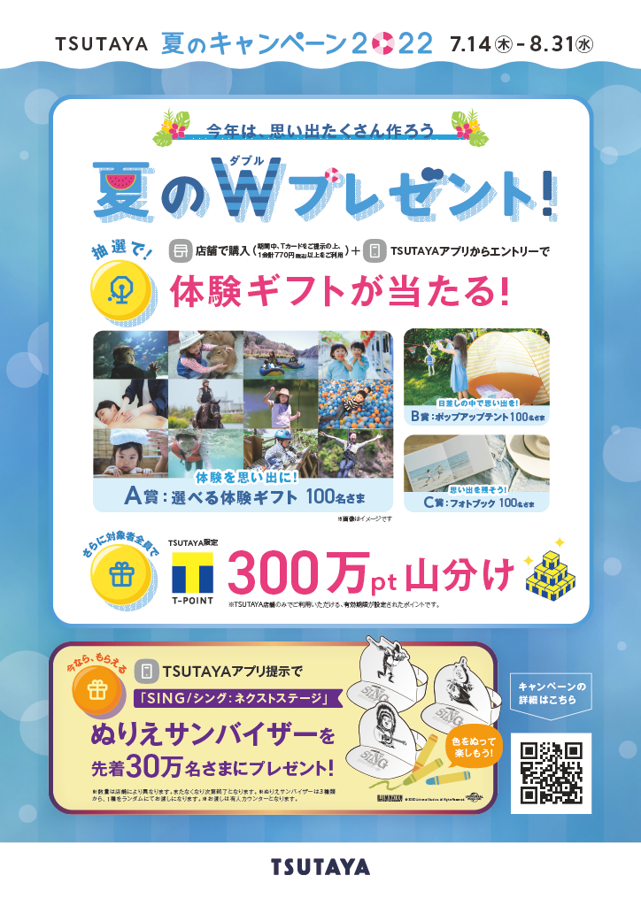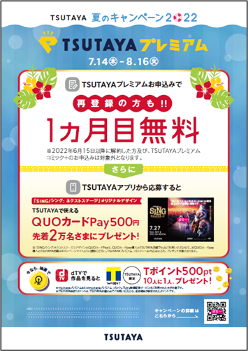 □キャンペーン対象店舗一覧:https://tsutaya.tsite.jp/storelist/feature/service/premium/summercp2022/index