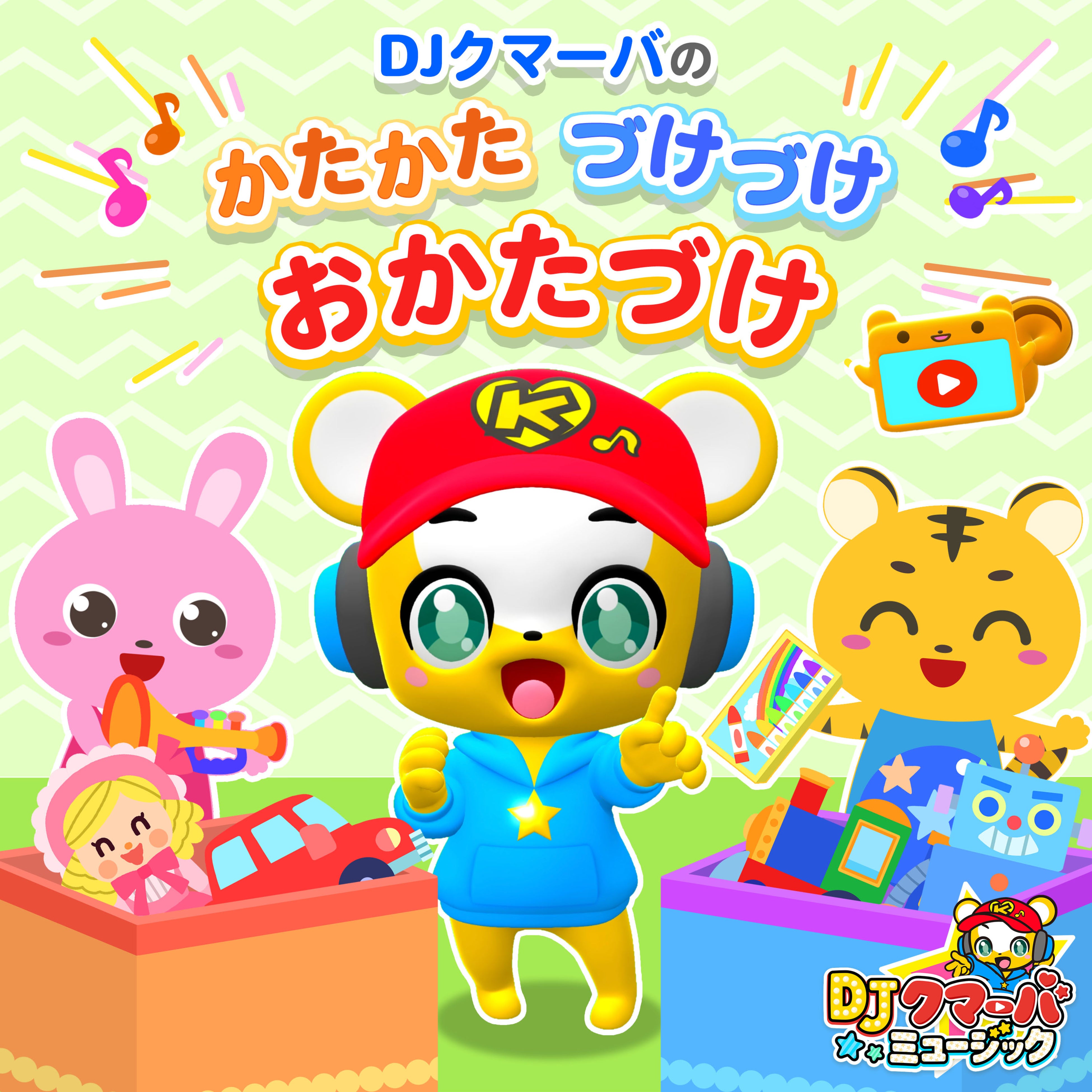 オリジナルソング第10弾となる「かたかた づけづけ おかたづけ」は、DJクマーバと一緒にリズムにあわせて歌うことで、お片付け時間が楽しくなる元気ソングです。この楽曲で、お子さまによい生活習慣を身につけてもらえると嬉しいです。