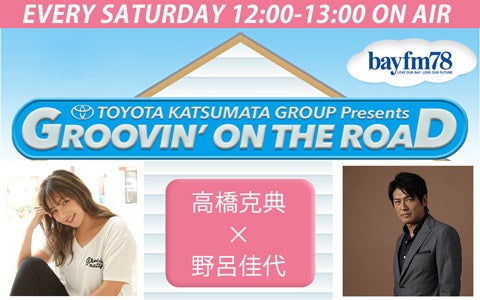 『TOYOTA KATSUMATA GROUP presents GROOVIN’ ON THE ROAD』は高橋克典&野呂佳代、通称?カツカヨコンビで週末のランチタイムを楽しい気分にできる選曲とトークをお届けしています。