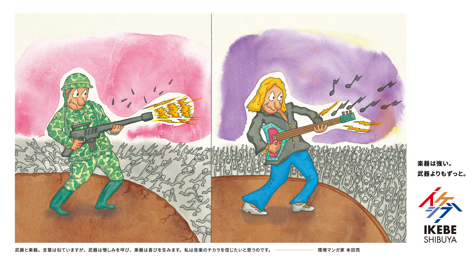「武器と楽器。言葉は似ていますが、武器は憎しみを呼び、楽器は喜びを生みます。私は音楽のチカラを信じたいと思うのです」(本田亮)