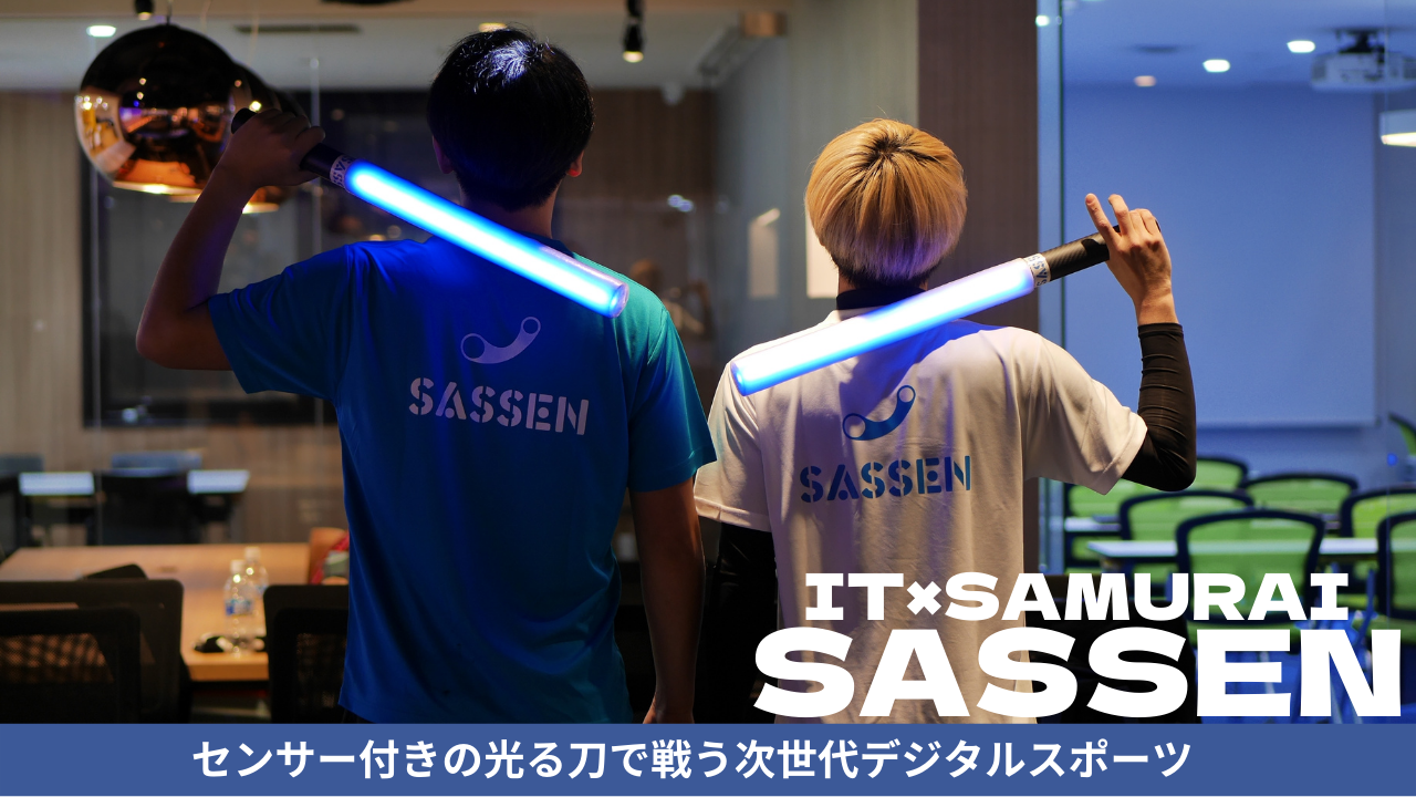 SASSENとは、センサー内蔵の光る刀で戦う次世代のデジタルチャンバラ。もともとは福岡県北九州市の武術道場で発祥し、安全で手軽にどんな年齢でも楽しめる生涯スポーツとして活動している。